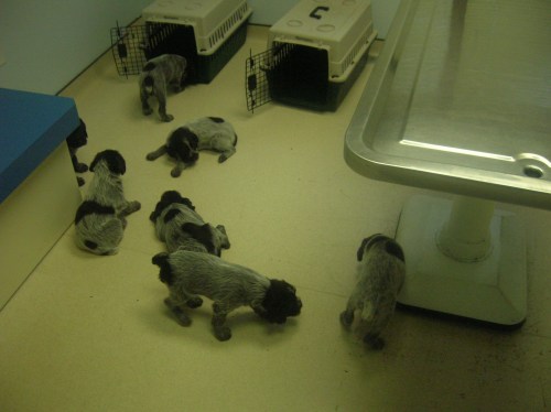 The litter did very well at the vet today, nobody peed or pooped on the floor, and nobody yelped, jumped or cried when they got their shots. Everyone has a clean bill of health!