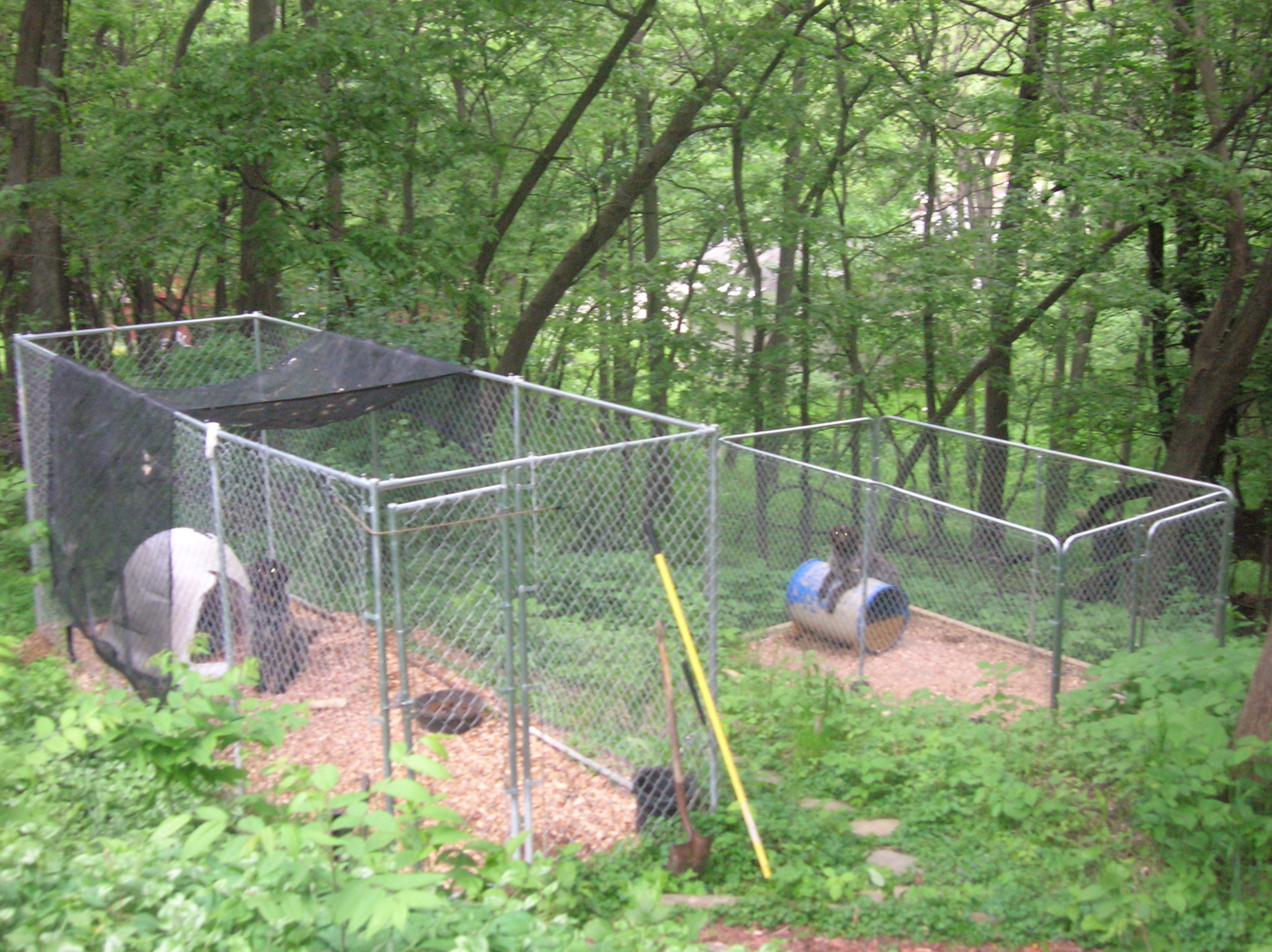 My dogs were brought up in the house as pups, but as they grew older and we added more human babies to the family, we moved them outside. The puppies currently reside in Sue’s kennel, but receive plenty of attention.