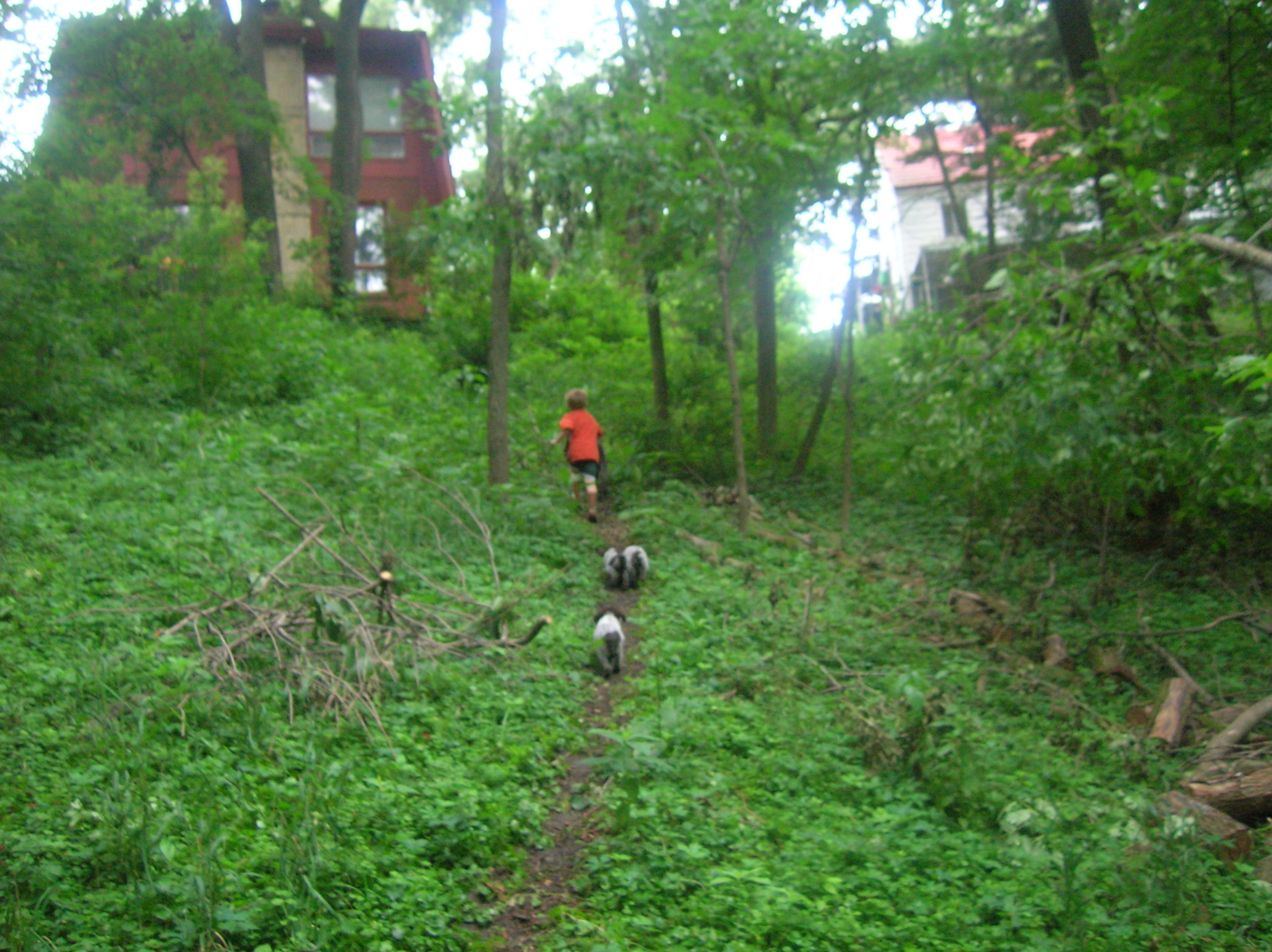 Today my kids and I decided that all of the puppies needed to walk in the forest. Between coaxing and carrying, we got them all down the hill and moving on the path. I can’t say that I blame the pups for being hesitant to hike. Walking in the forest is no stroll in the park here, as the hills are steep and the trail is muddy with the thrice daily rainstorms we’ve been having.