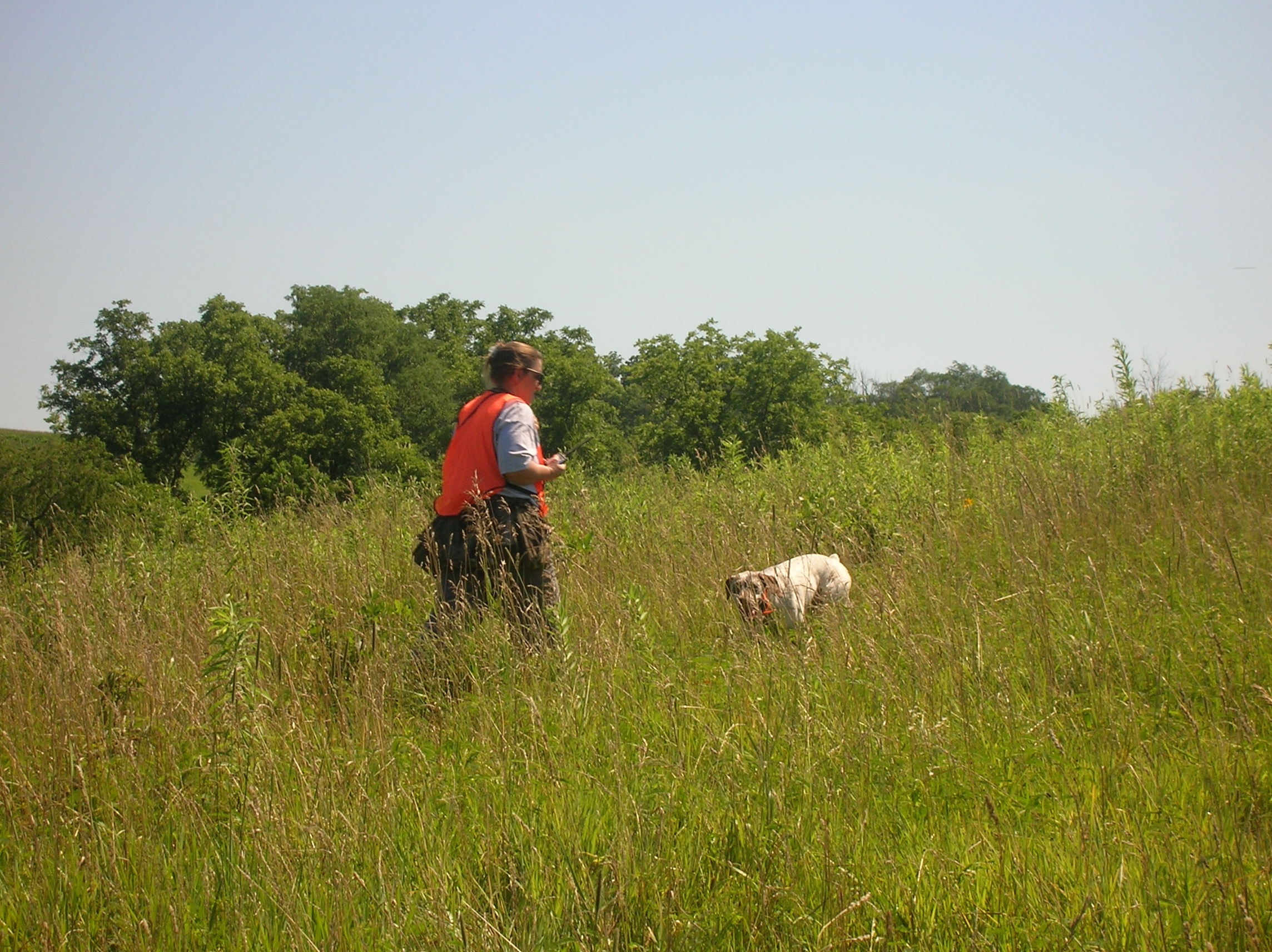 To use an analogy, NAVHDA is to hunting what rodeo is to ranch work. Both rodeo and NAVDHA training/testing take a practical skill set and turn it into a technically judged event. As Chuck Johnson says in his book Training the Versatile Hunting Dog, “You can successfully train your dog and end up with a brag dog without participating in one of these (NAVHDA or VHDF) tests” (p 124). A few members and trainers at the Heartland NAVHDA Chapter’s training day even said that NAVHDA testing takes away skill from the field and vice versa (the field takes away skill from the testing).