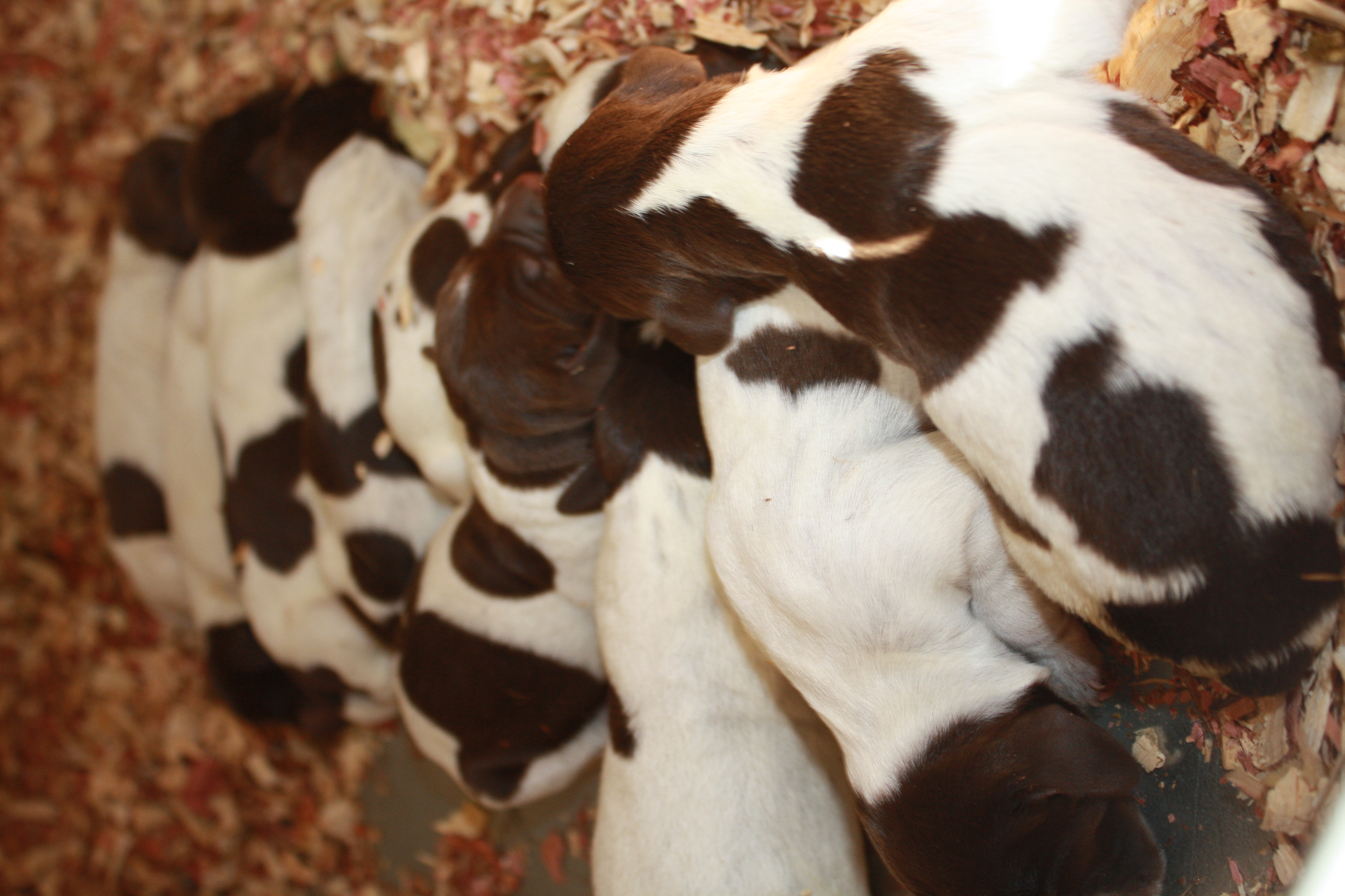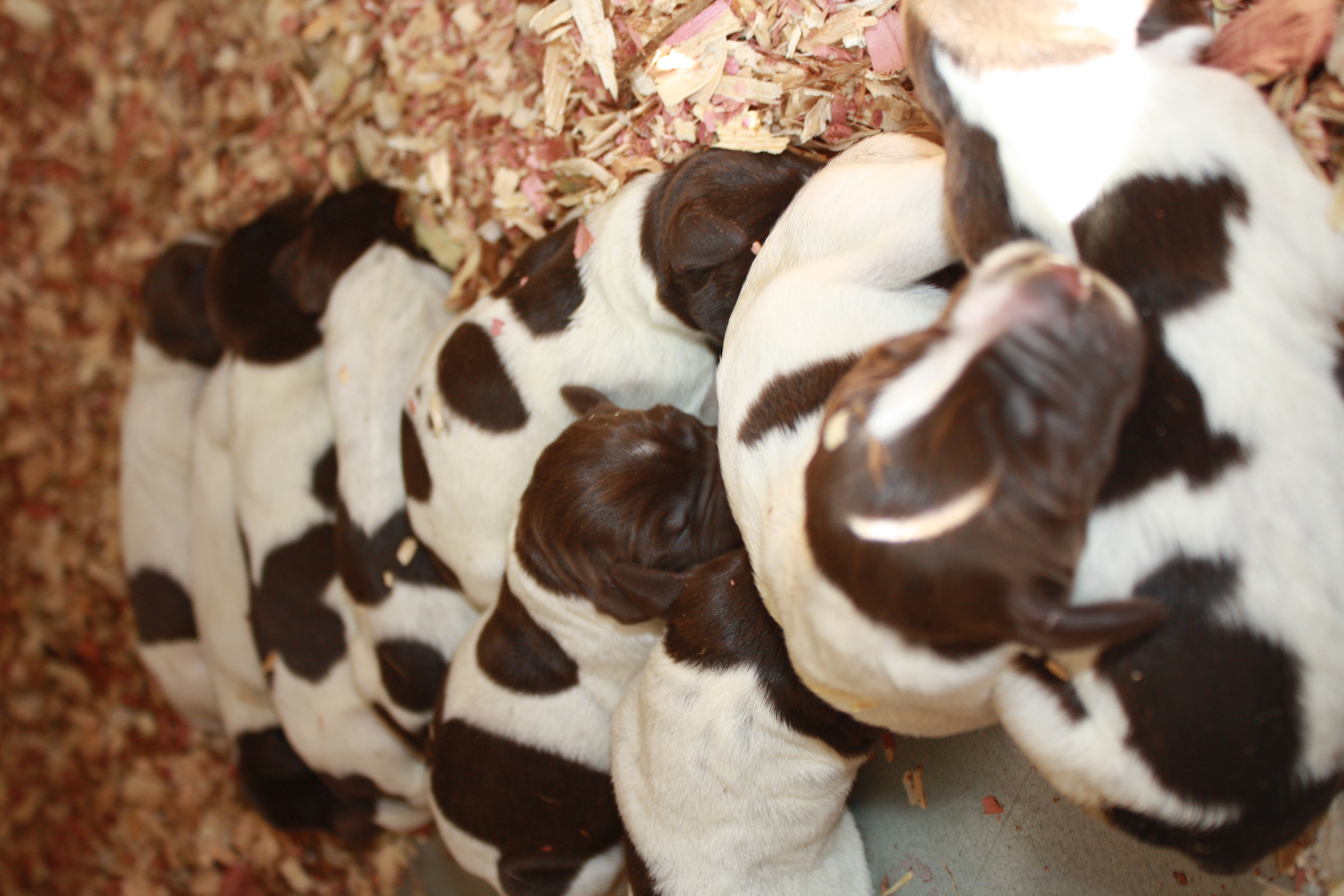 Sue took a food and water break, so I stuck my head in the dog house/whelping box to check the pups out.