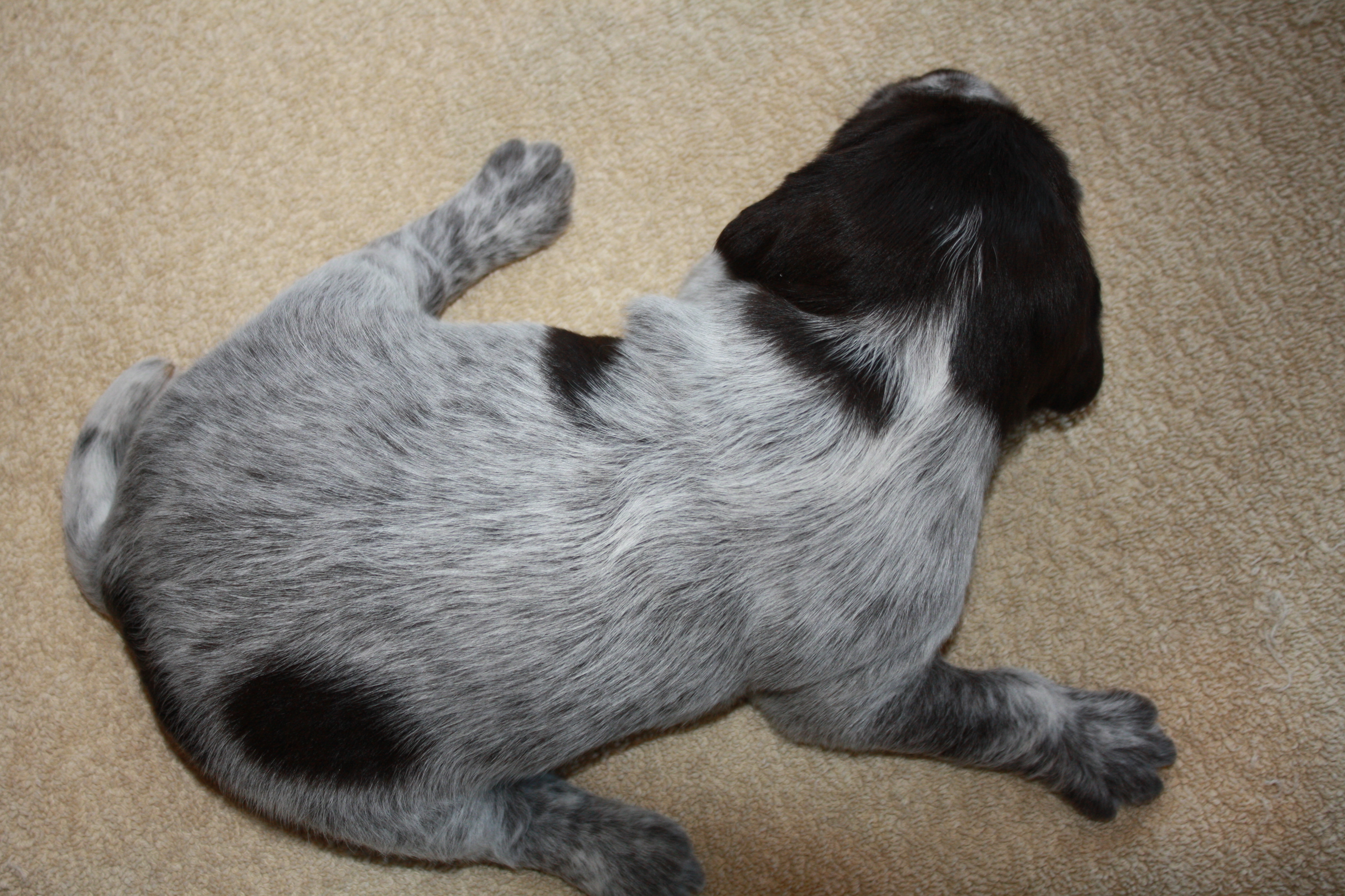 The puppies are all doing great, but the people are a little under the weather. Hopefully we can shake this stomach bug that made its way through the house over the last four days and all get better to enjoy the nice weather that is finally going to arrive. The “E” litter moved outside about a week ago and the “F” litter will be following them soon. It will be nice to have my house not smell like a dog kennel anymore:) It is so hard to believe that we are already on the countdown to puppy homegoing at 8 weeks old. The “E” litter will be 8 weeks on April 24th and the “F” litter on May 8th. I am planning on reaching out over the course of this week to talk to everyone about transportation plans. I will finalize puppy picks around 6 weeks old, so please be patient with me. So let’s get to the fun stuff, the pictures!