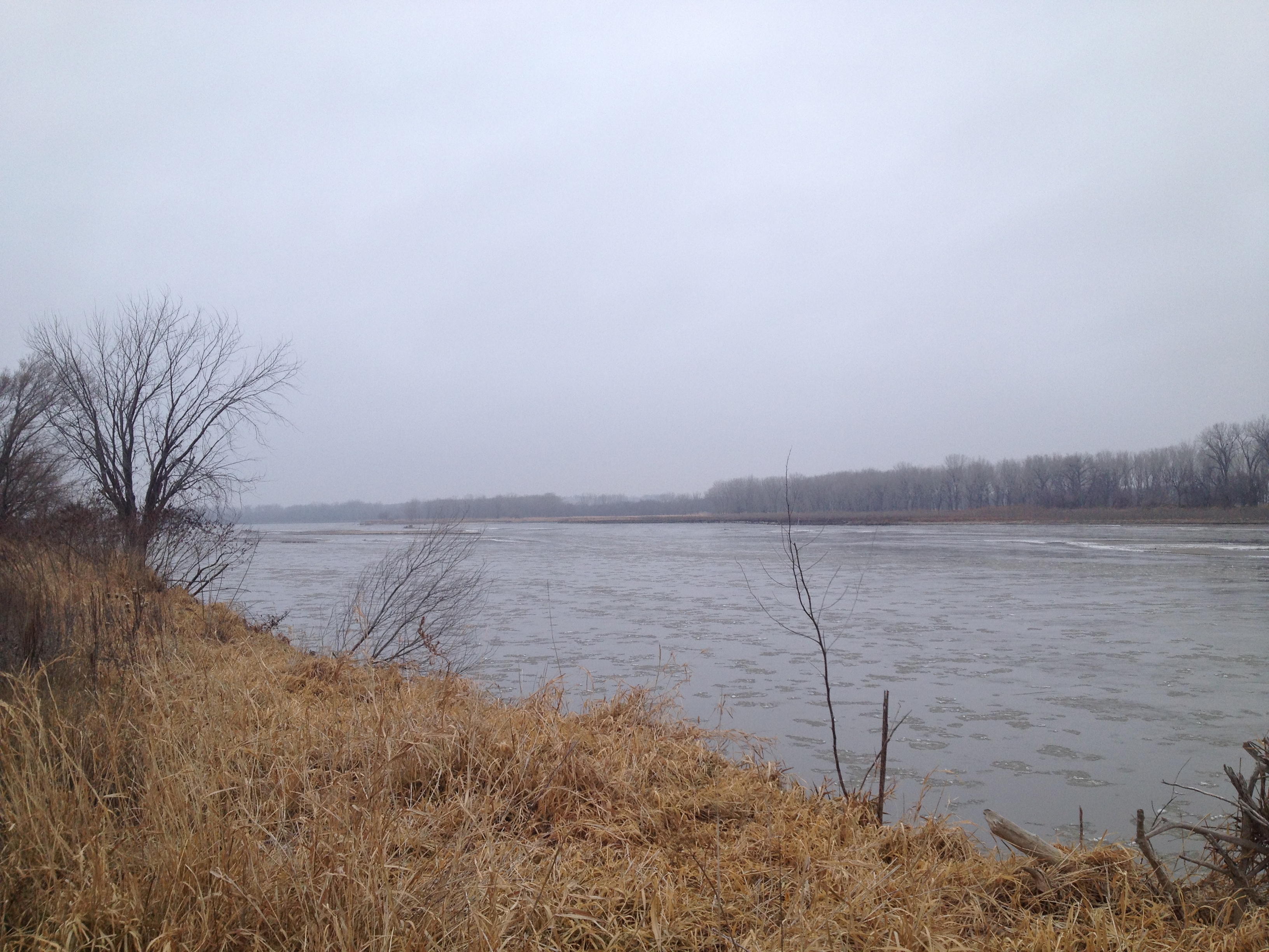 A couple of Thursdays ago, I went out on my own during the day to see if I could find any ducks or pheasants. I found them both, but didn’t bag any. The first place that I stopped was a private pond along the south bank of the Platte River that we have access to. There were 3 mallards on the far side of the pond that got up upon my arrival. As I was making my way towards the river, I was so focused on the edge of the pond for any singles that I totally missed the huge flock that flew right over my head coming off of the river.