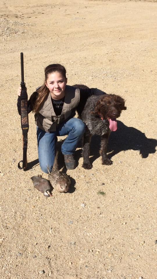 Happy 5th Birthday to our “A” Litter, including Whiskey in Nevada! Thanks Pete and Deborah for this pic with their daughter, Andi, Whiskey, and some birds that they brought home.