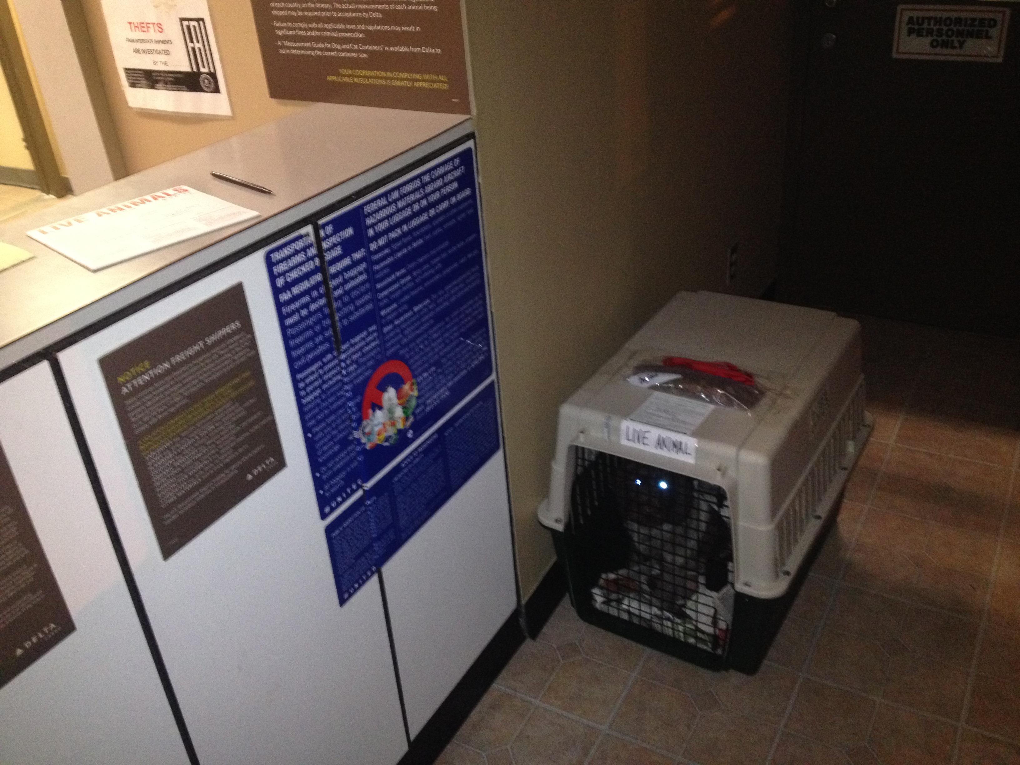 I had one unplanned air shipment of a pup up to North Dakota, but other than that, everyone else came to the house. Here’s the departure of the flying pup at the Delta Air Cargo office. Some people worry about flying pups, but I’ve done it about 20 times now and have never had a problem.