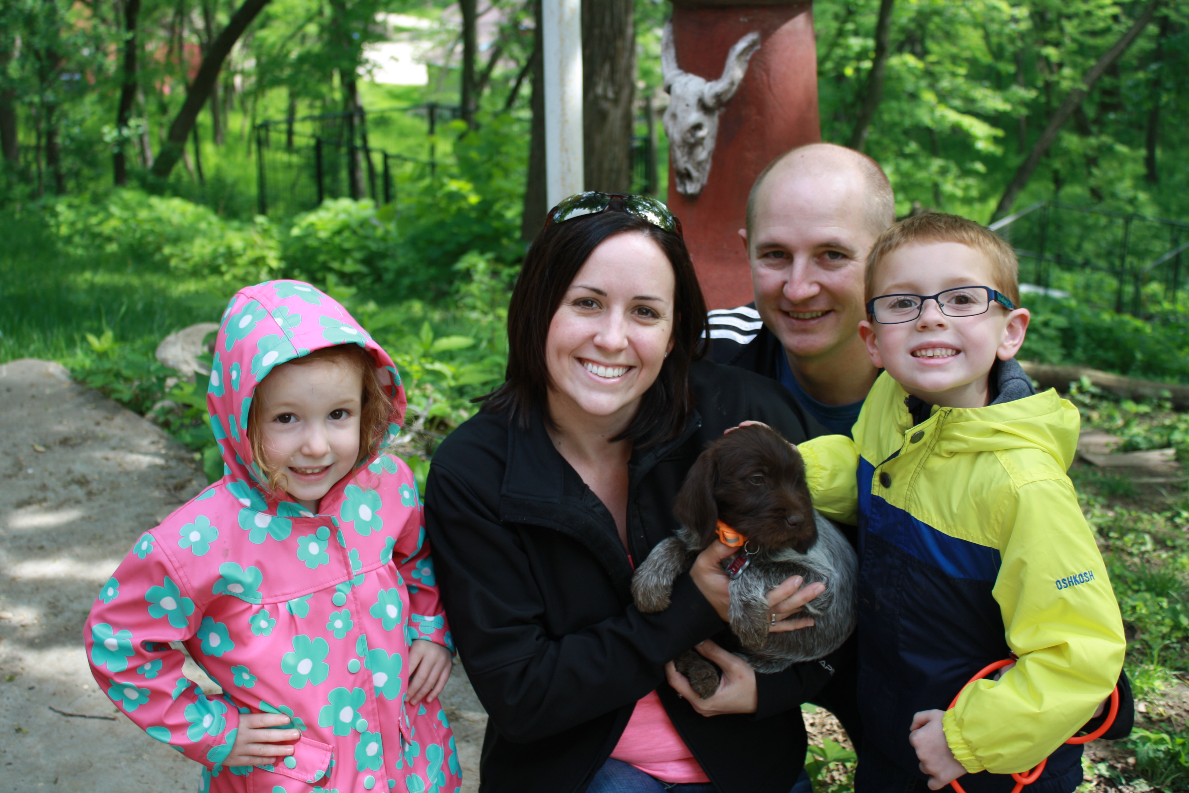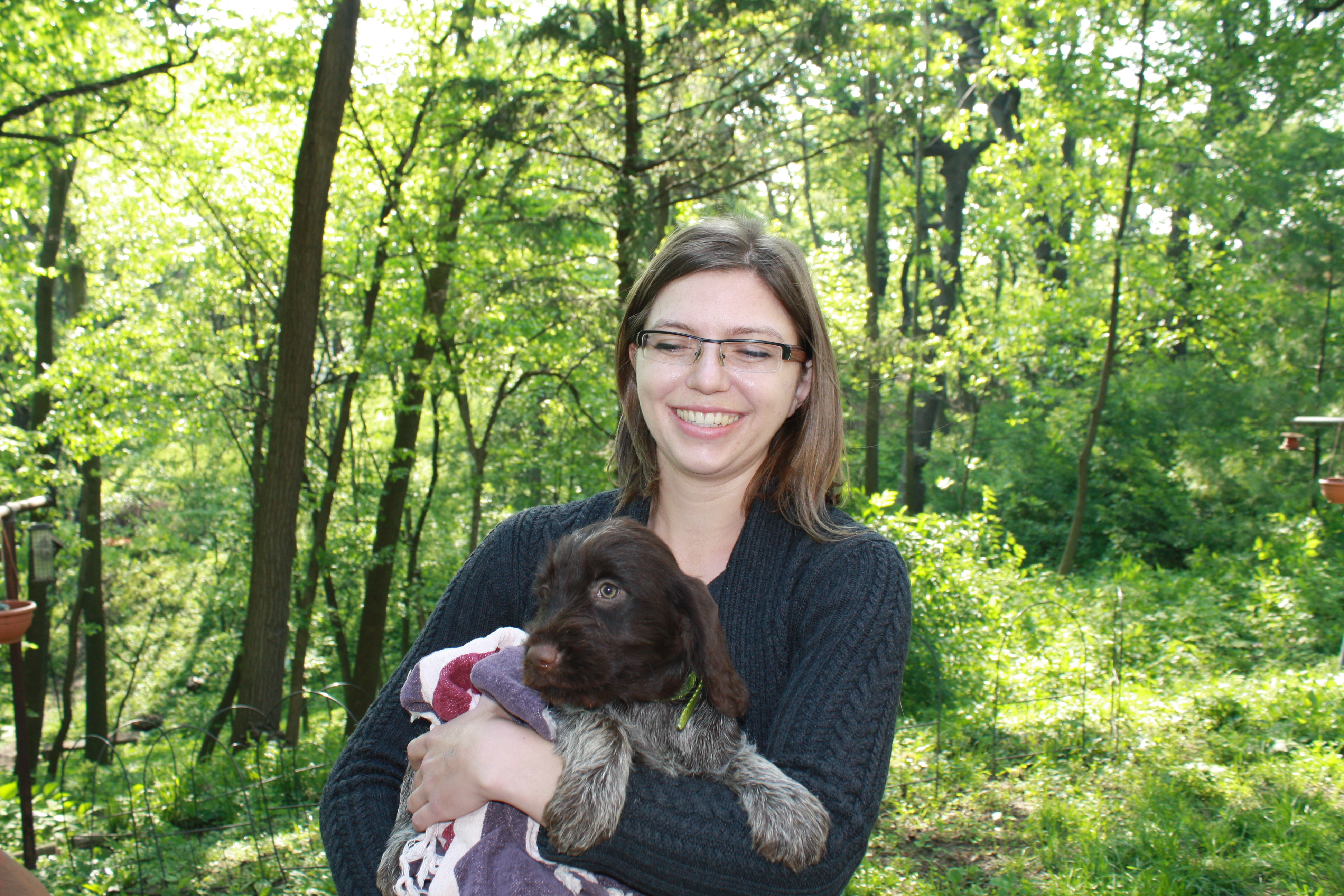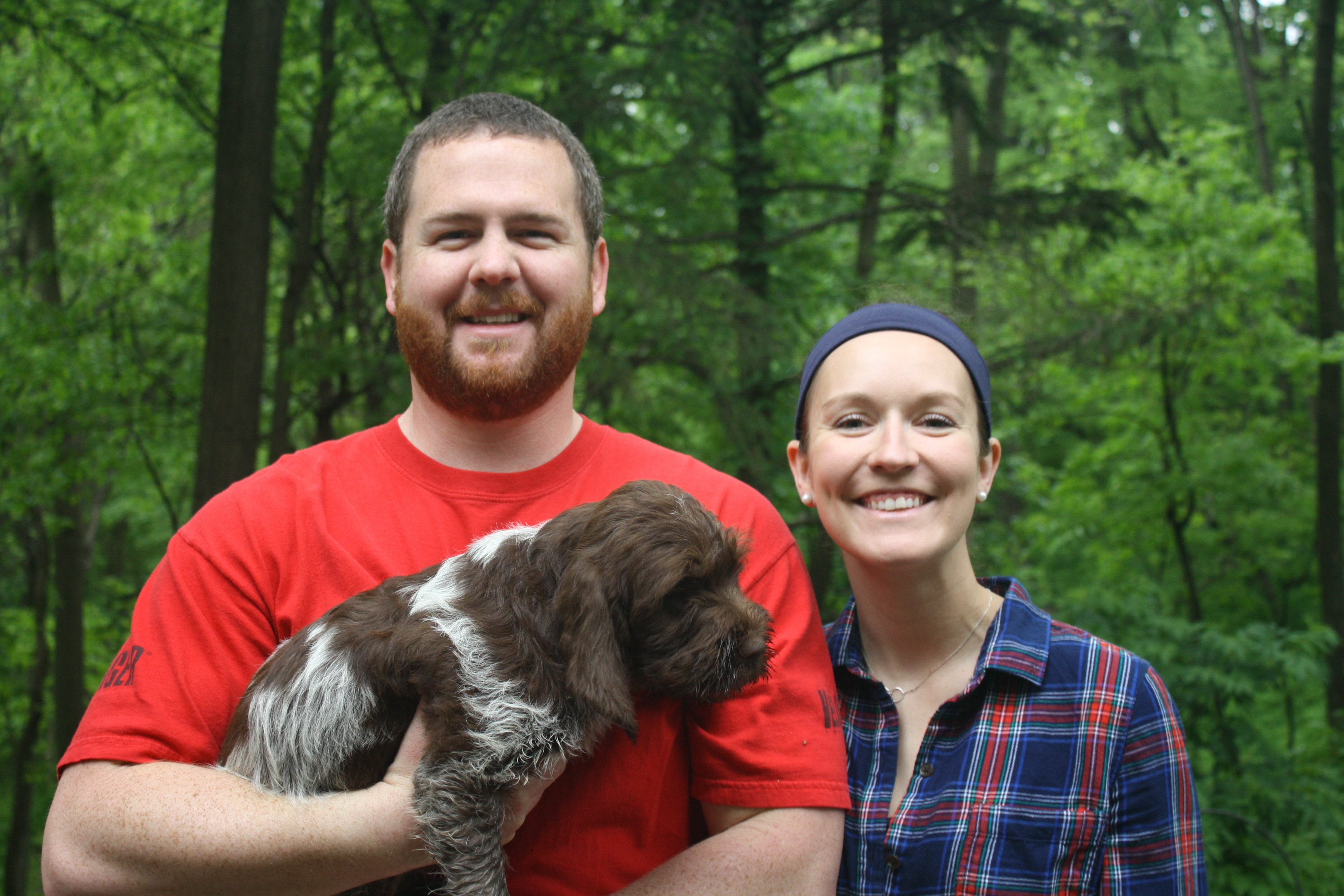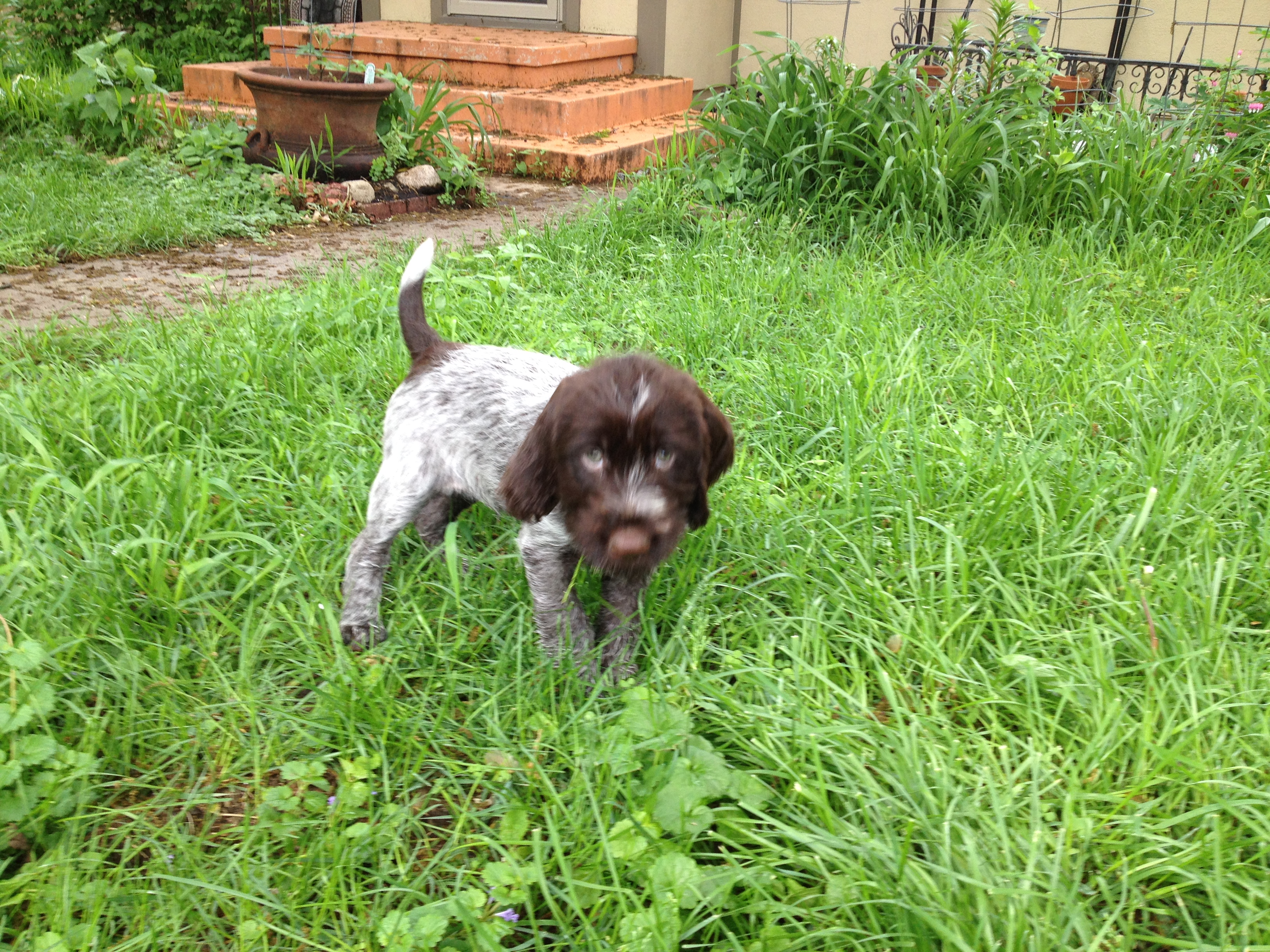 It was great meeting all of the new owners last weekend. It was a very busy one with 16 pups going home between Friday and Sunday, with the very last one yesterday evening. Last weekend was not only puppy homegoing weekend, but was also supposed to be my graduation weekend for my master’s degree. We just couldn’t make it work between the puppies and the Heartland NAVHDA Chapter Spring Test. We didn’t run any dogs, but Charles and Conrad cooked breakfast and lunch. But I’ll write more about that later.