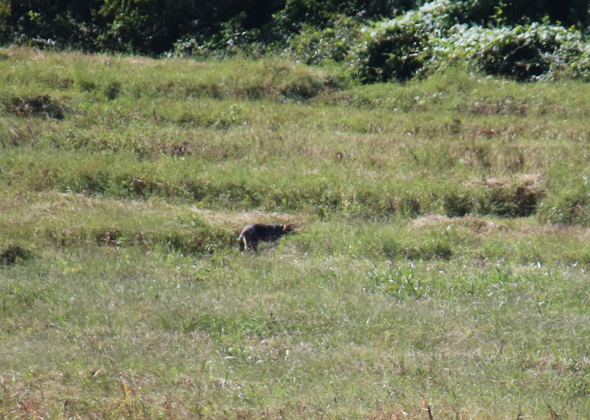 These photos are all taken from very far away because I wanted Caleb to handle Sally and not have her distracted by me. This was a little over a week ago, Sunday, September 26. We were at Quail Haven Hunting Preserve in Harmony, North Carolina. She was the eighth dog to run the test and so the field was pretty stinky. We all love to make excuses as to why our dogs didn’t do what they were supposed to in tests, so here’s mine. Sally had fours on everything except “Search” was a three (I think she was hesitant with the stinky bird field) and “Desire to Work” (she’s never been wild bird hunting before, so this is all still new) was also a three. She probably had some of the most bird finds on the day though, but as one of my favorite judge quotes goes, “This isn’t an Easter egg hunt”.