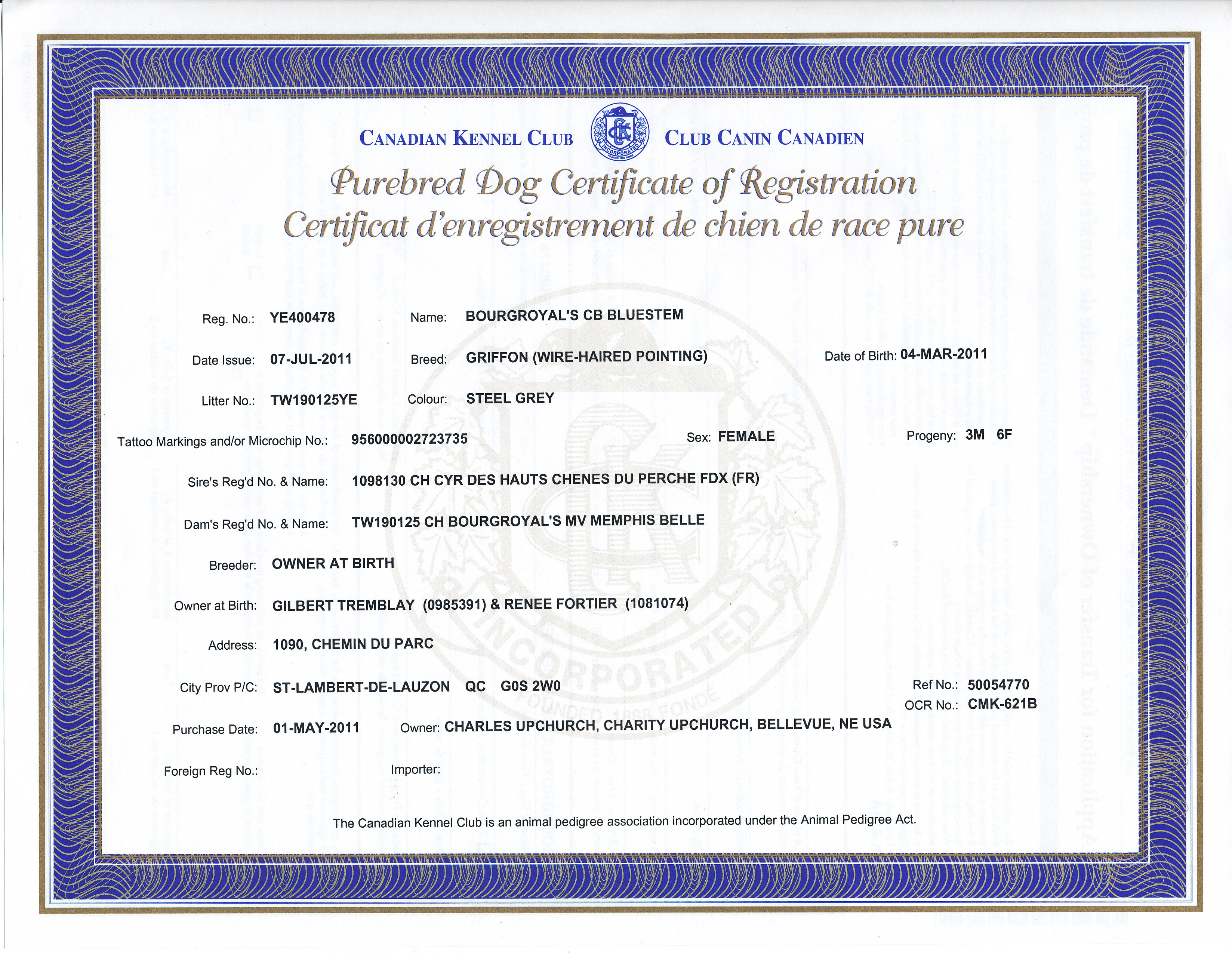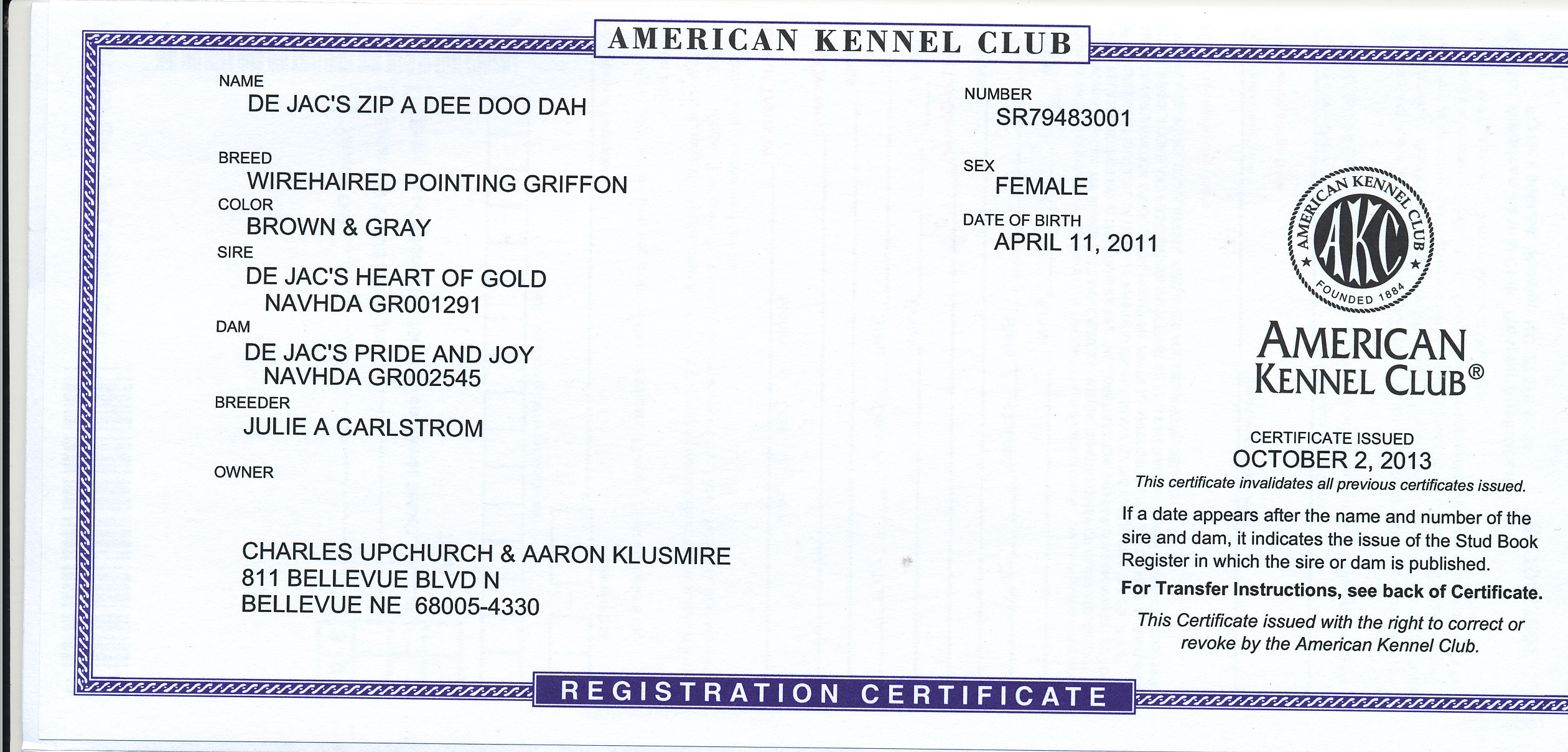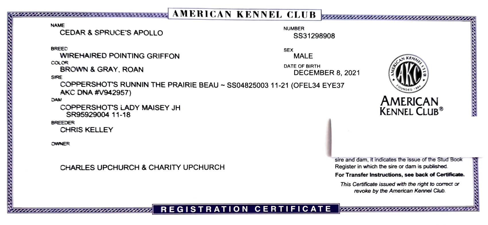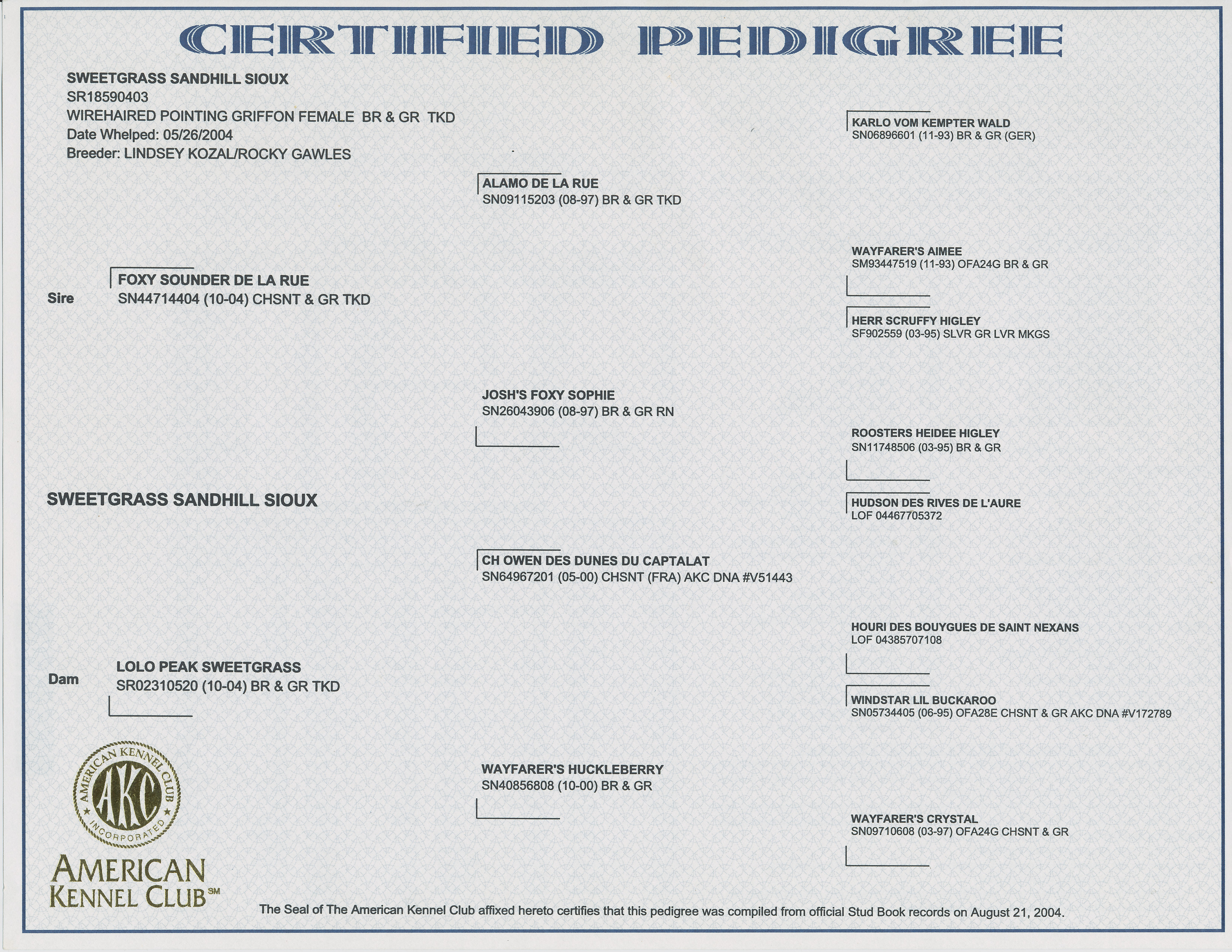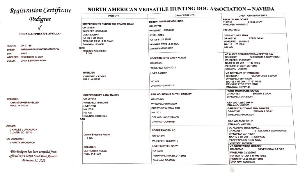 His bloodlines are out of old school hunting griffon kennels in Wisconsin, Michigan and Iowa. He retired to a farm in Kentucky where he was tragically killed in a collision with an ATV not long after.