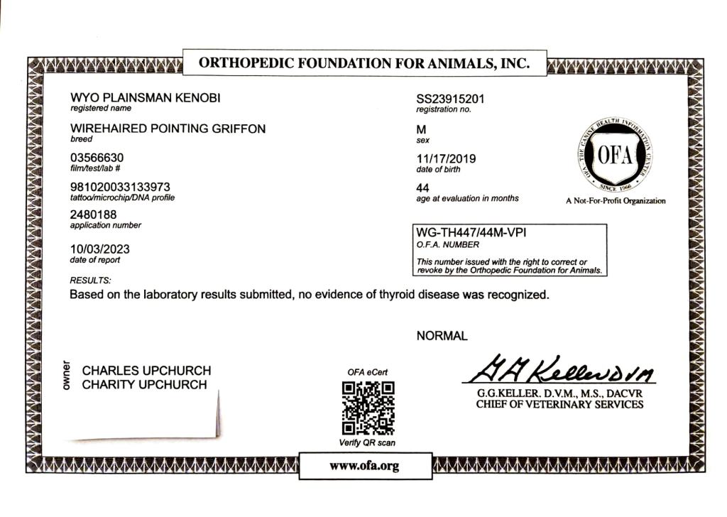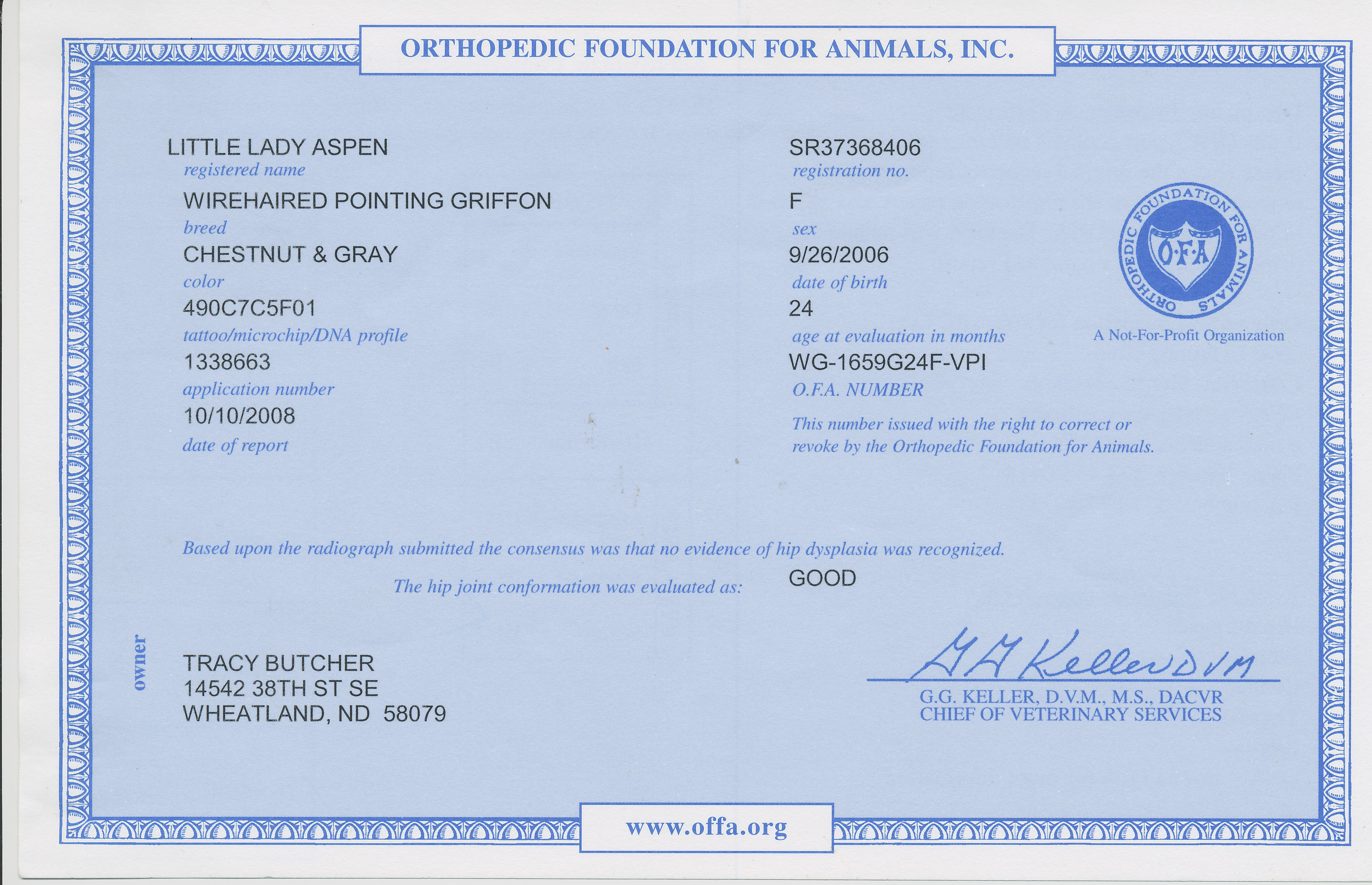 Hip Certification: OFA Good