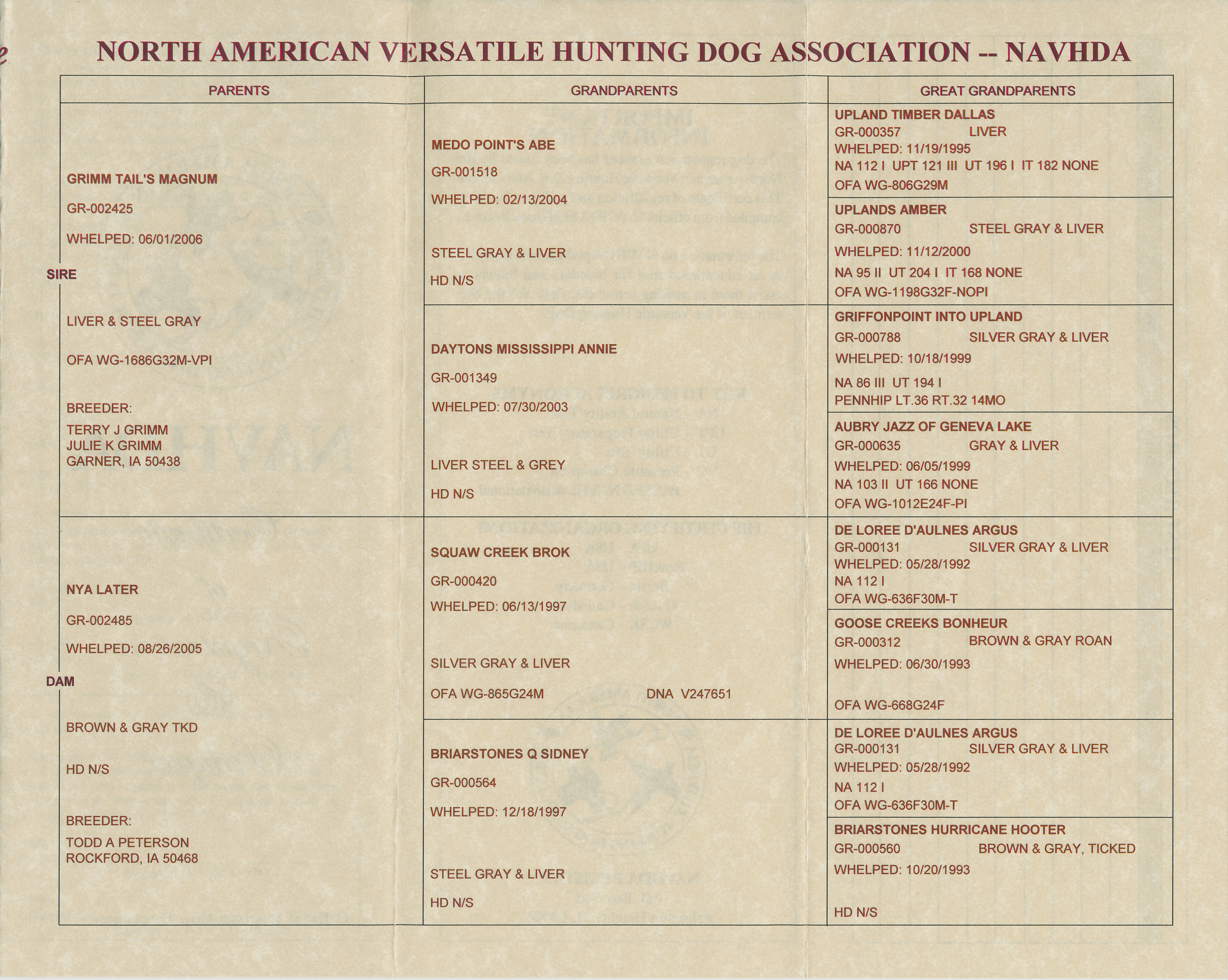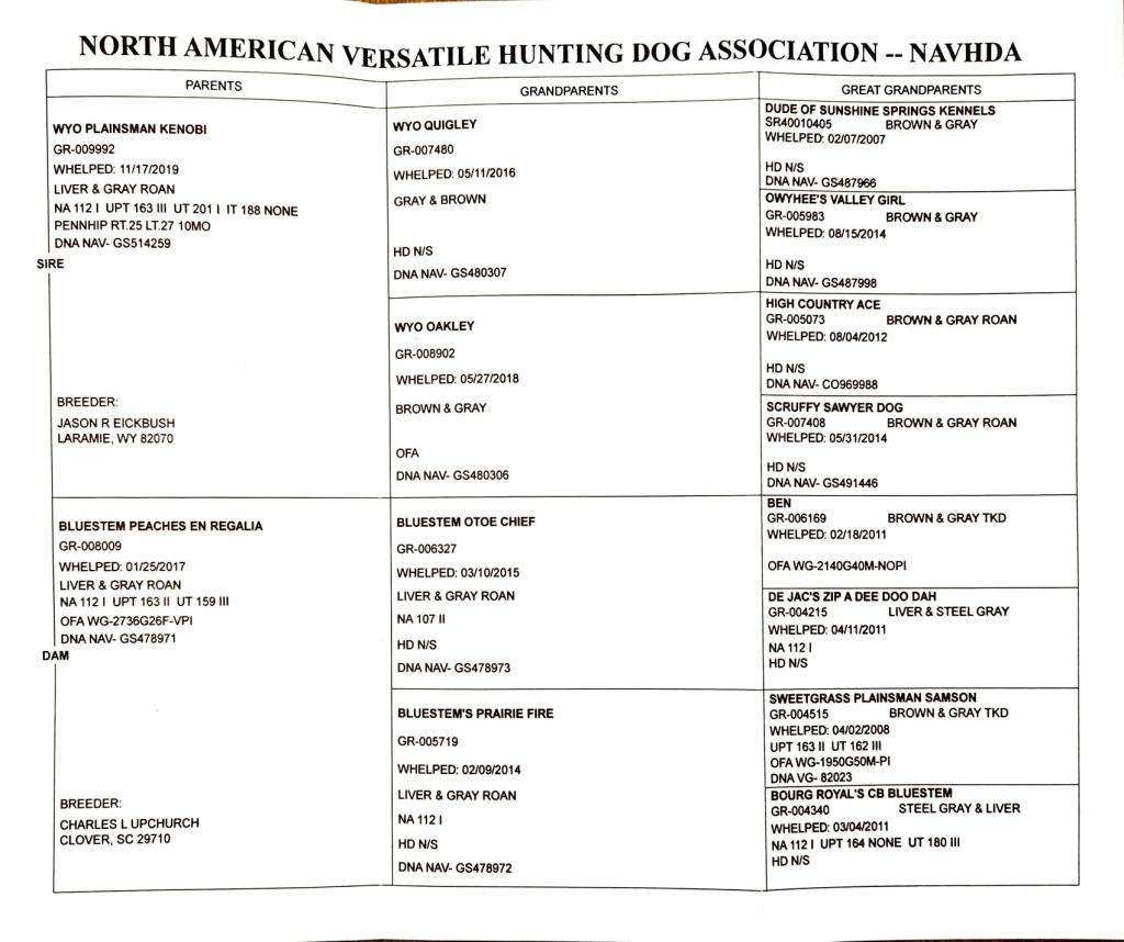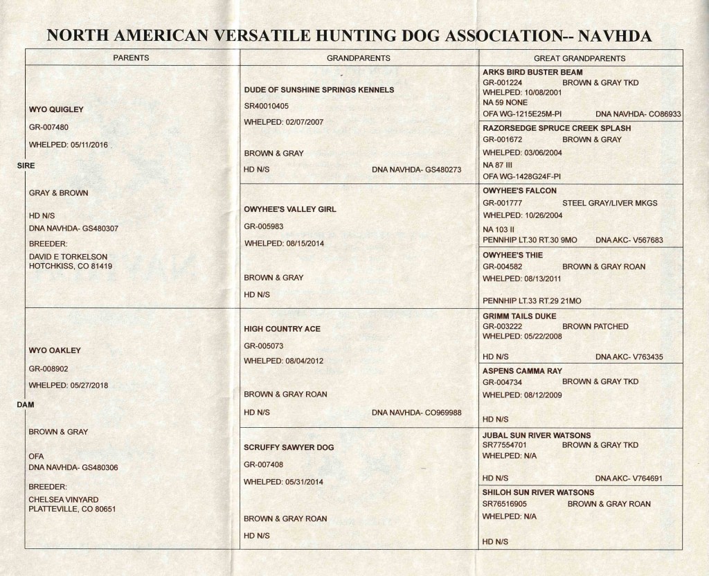 Pedigree: AKC/NAVHDA Sweetgrass Plainsman Samson UT III x AKC/NAVHDA Sweetgrass Sandhill Sioux