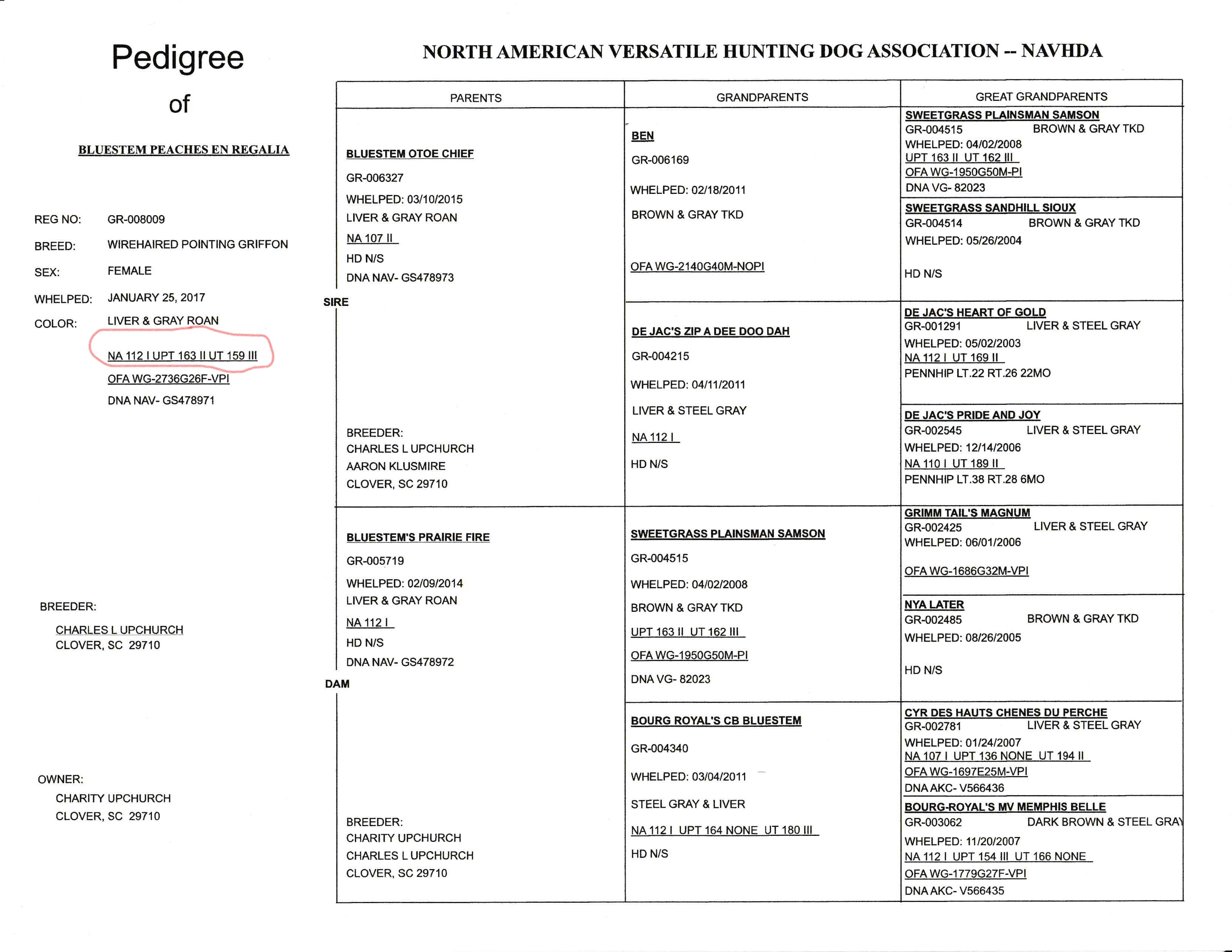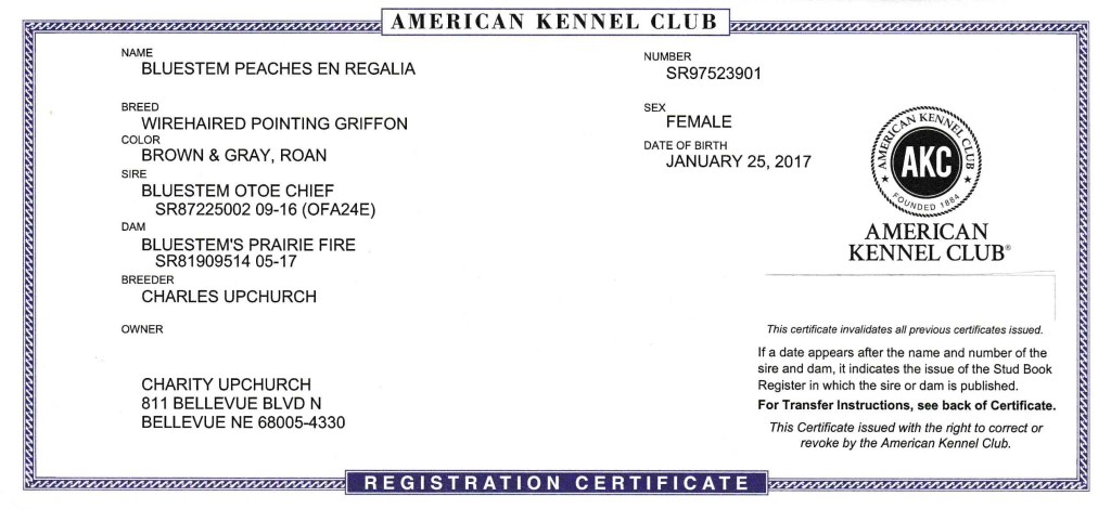 AKC/NAVHDA Bluestem Peaches En Regalia NA I, UPT II, UT III “Ruth”