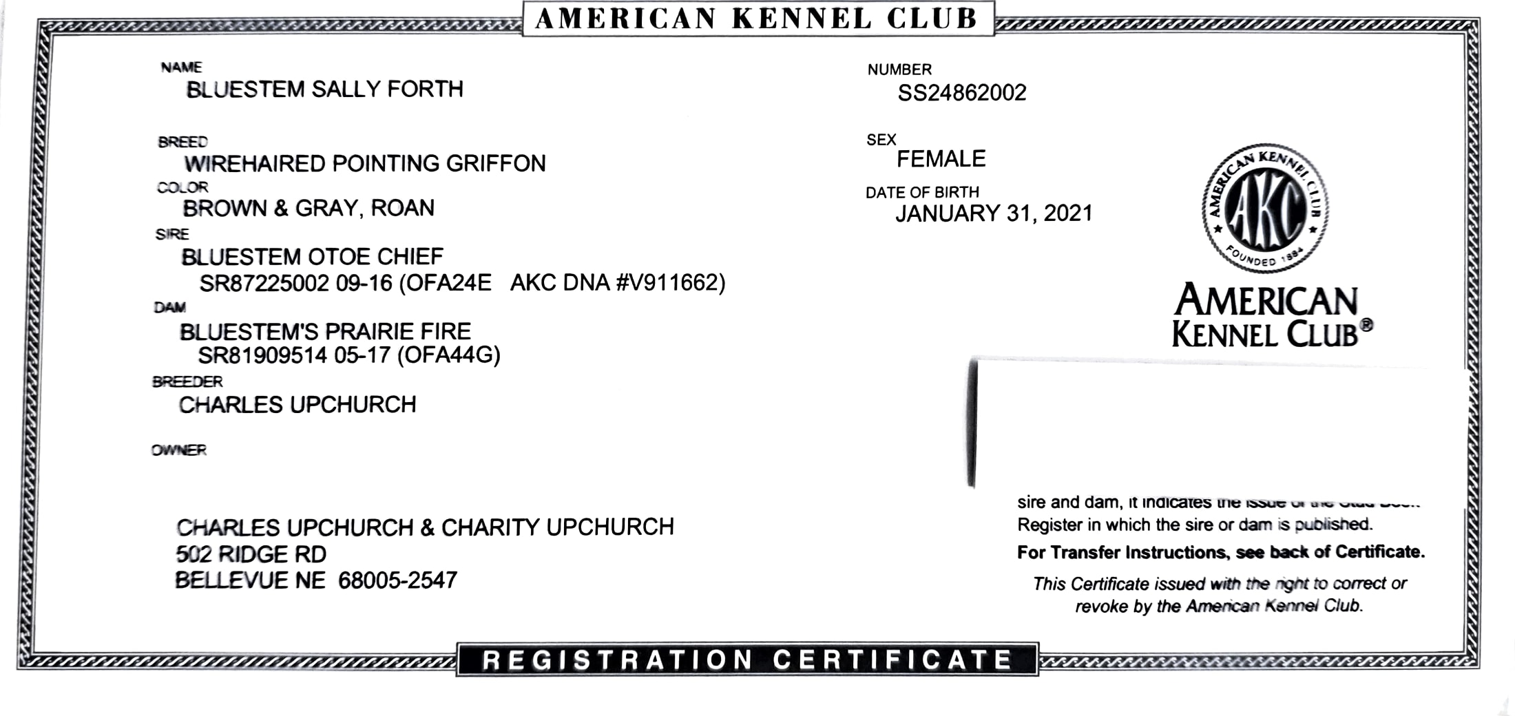 AKC/NAVHDA Bluestem Otoe Chief, NA II