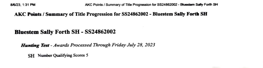 AKC Senior Hunter, 5 passing scores in 5 runs