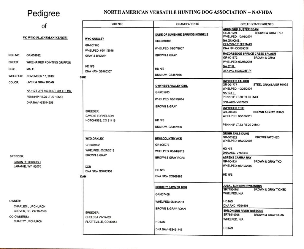 AKC/NAVHDA VC Wyo Plainsman Kenobi NA I, UPT III, UT I “Obi”