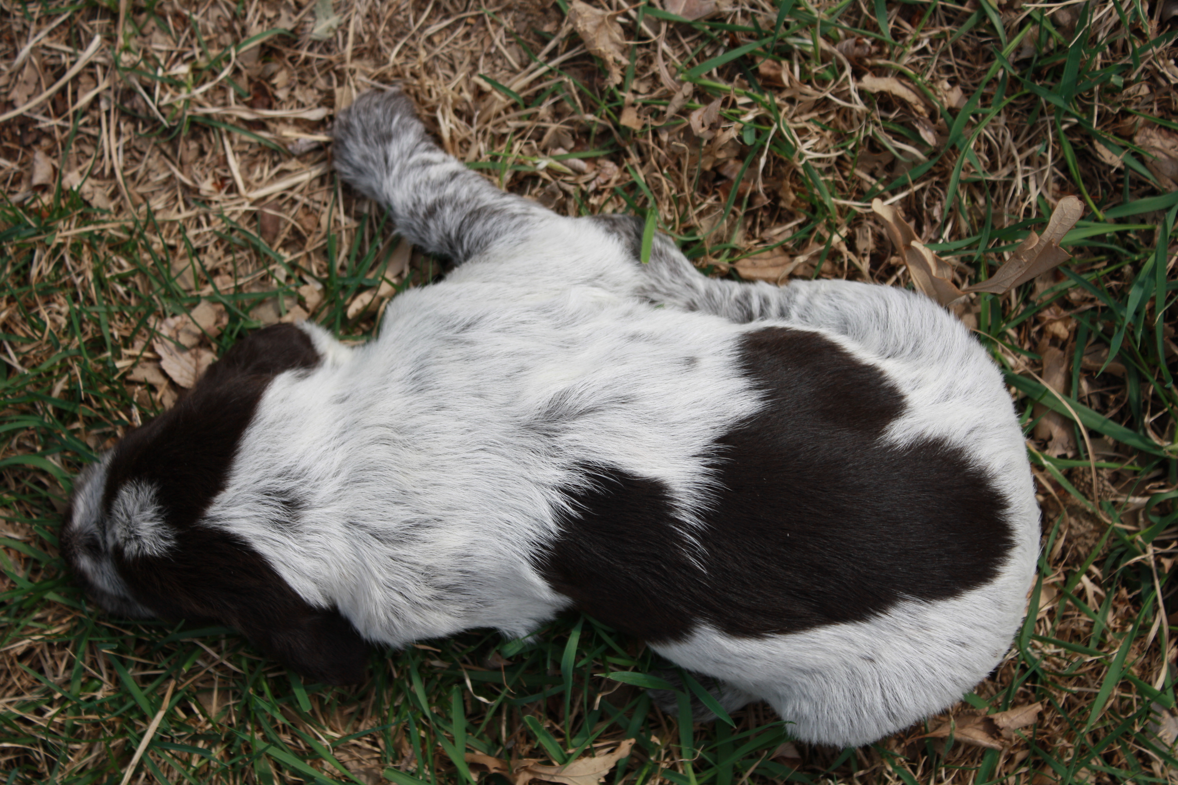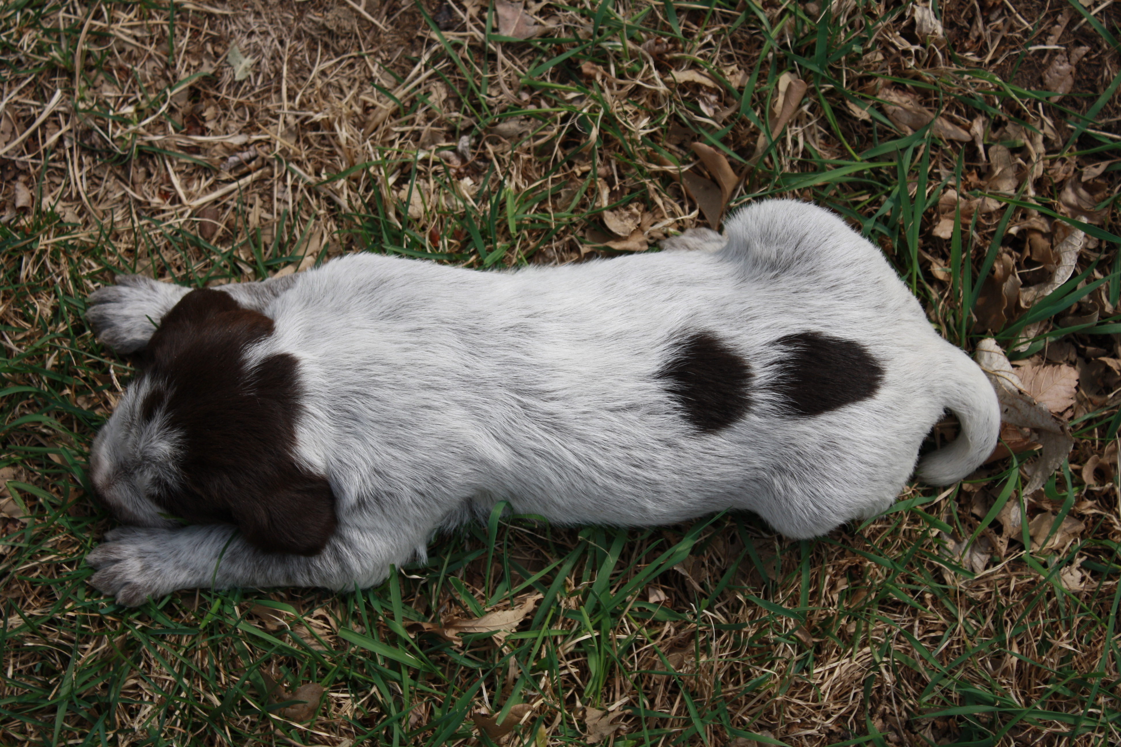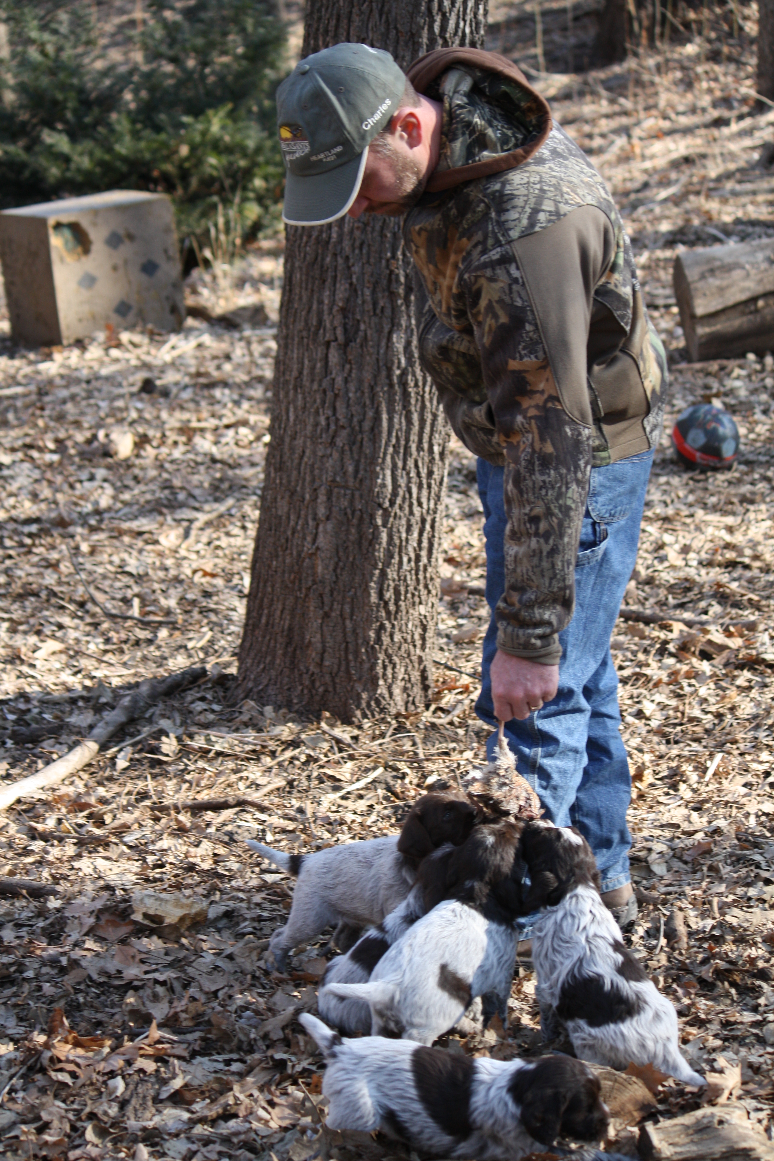 The video this week is a little random and slightly controversial in dog training circles.  Playing with the dead quail in such an uncontrolled environment should be very limited.  Here I am doing it in the litter setting just to activate prey drive.  Notice how they want to fight over it and hard-mouth it.  That is why it is limited and I don’t recommend doing this at home with your new pup.  Once you have your pup home, you want to work on retrieving with toys and dummies.  Once they have that down, then you can graduate to retrieving a carcass.  But don’t let them get rough with it like they do here.  The second portion of the video has Charles playing with the pups with a wing.  Once again, something that should be very limited if you do it at all.  Ideally you’re looking for the pup to point the wing, but these guys are in their play yard and not in a training environment, so they just want to chase it.  These pups are great pointers, but not the best on-call actors.  If you look at the pics of Herbert and Harold, they are pointing the clicking of my camera. .
