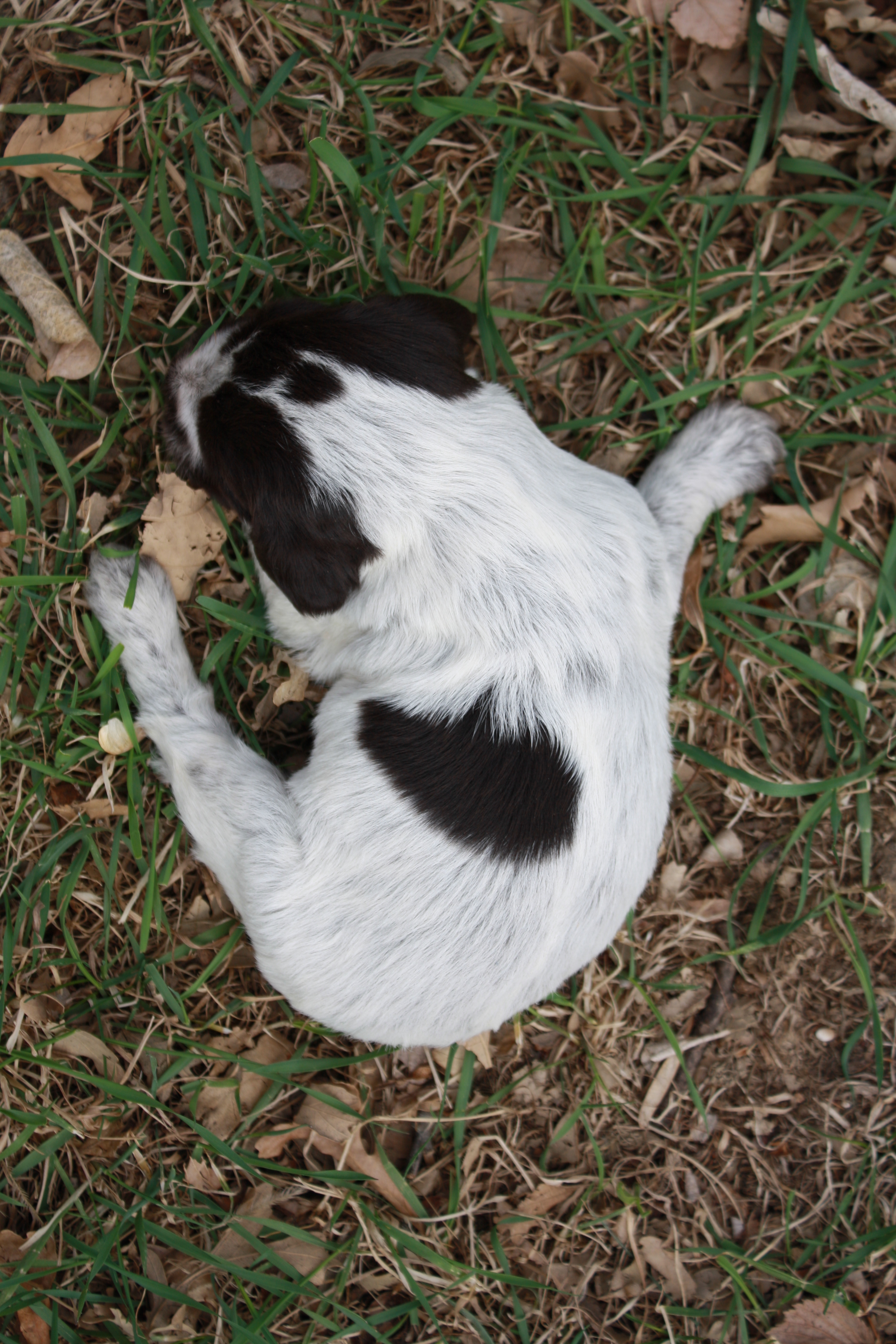 The puppy that we kept out of the “G” litter, “Fire” from Sam and BB is doing well.  She is 3 months old right now and weighs about 17 pounds.  We took her out with 3 of our captive quail on Friday, unfortunately 2 of them got away from us before she could get on to them, but we did have one good point and flush.  My video camera was out of battery, so I only took a couple of stills from the day.