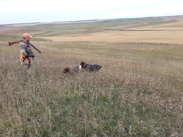 Sam retrieving a sharptailed grouse on the 2013 North Dakota trip