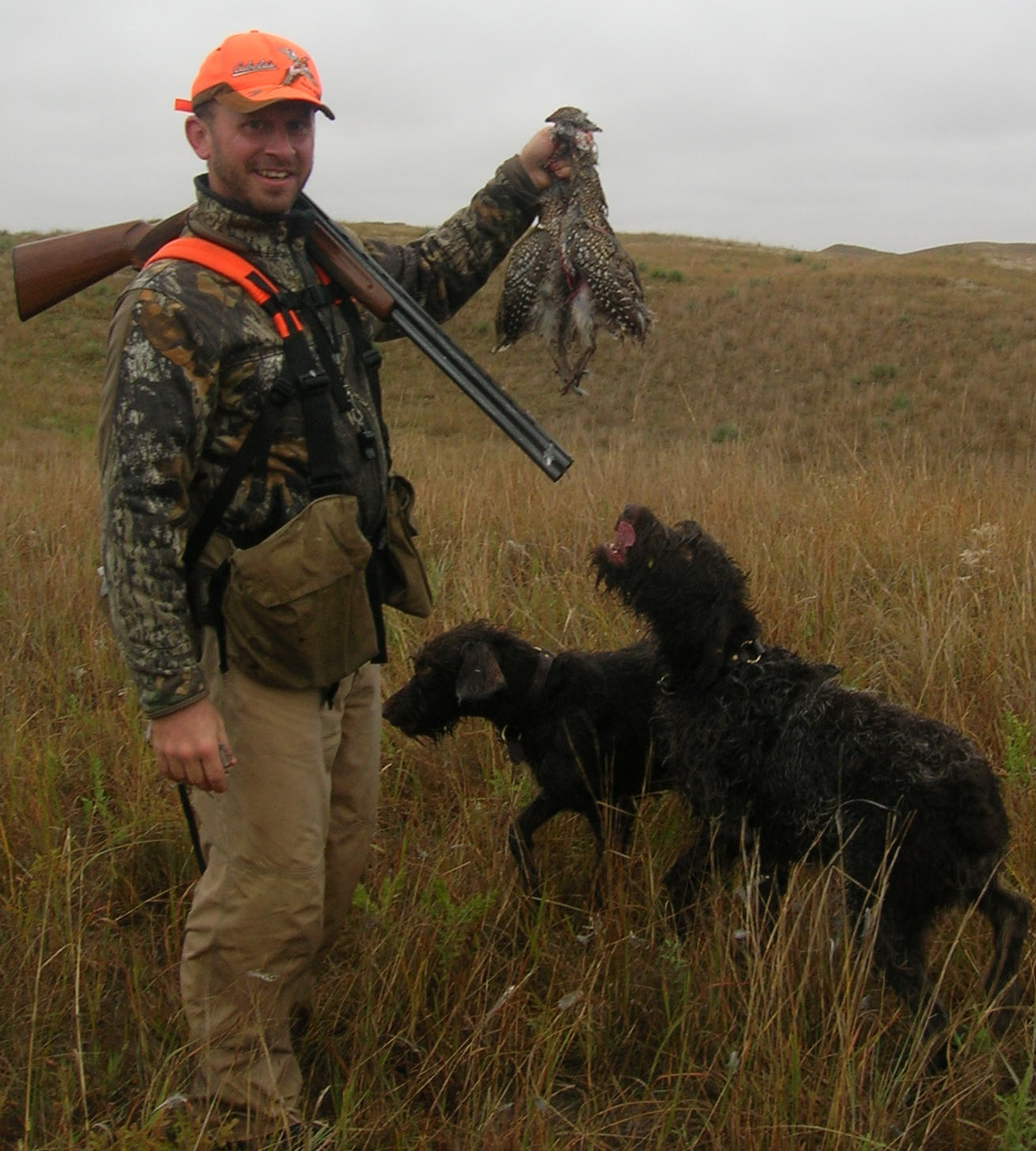 Sue and Sam retrieved Charles’s grouse double in the Nebraska Sandhills, Oct. 2010