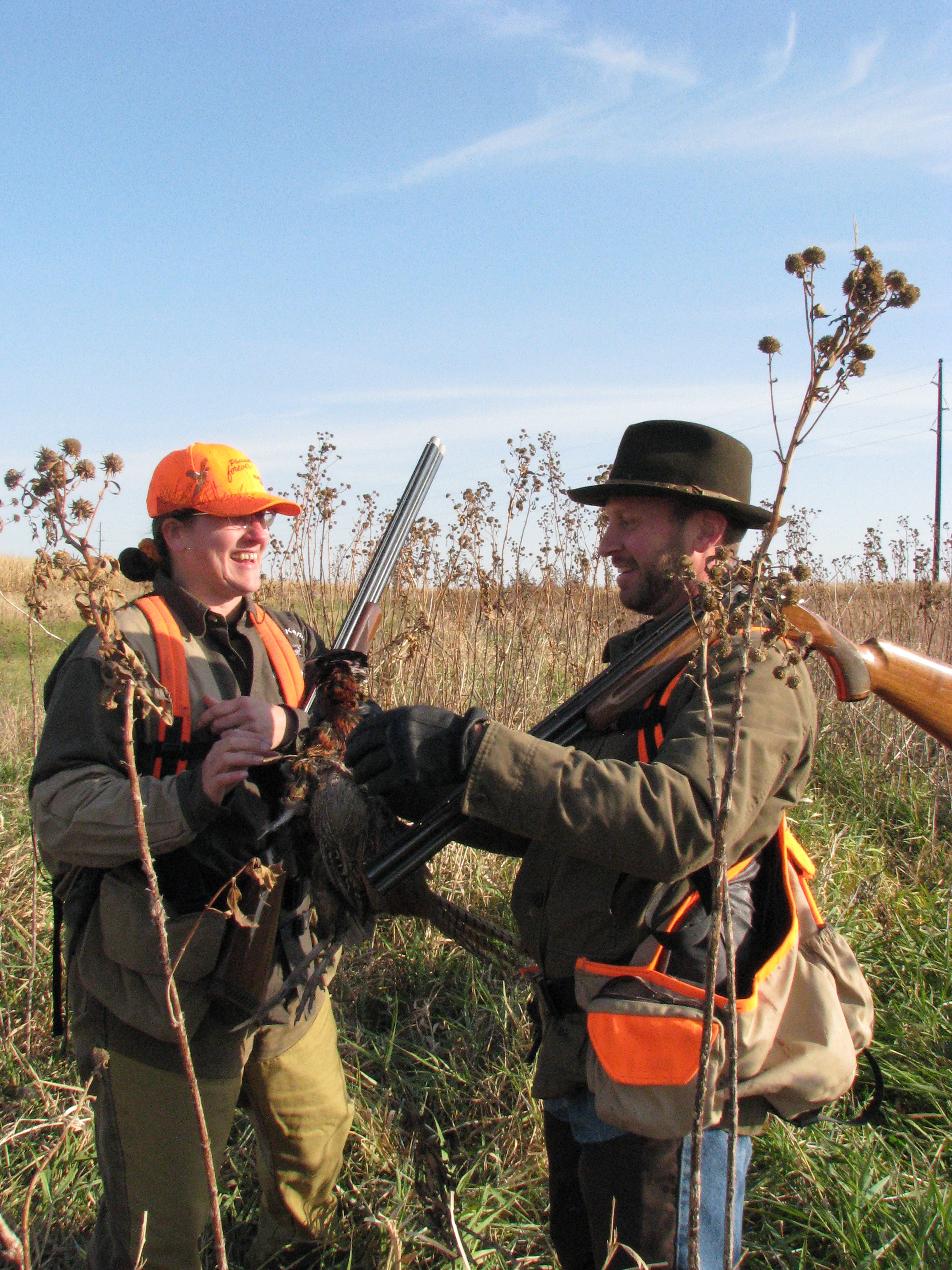 Charity and Charles debate who shot the pheasant 10/29/11. Photo courtesy of ultimateupland.com