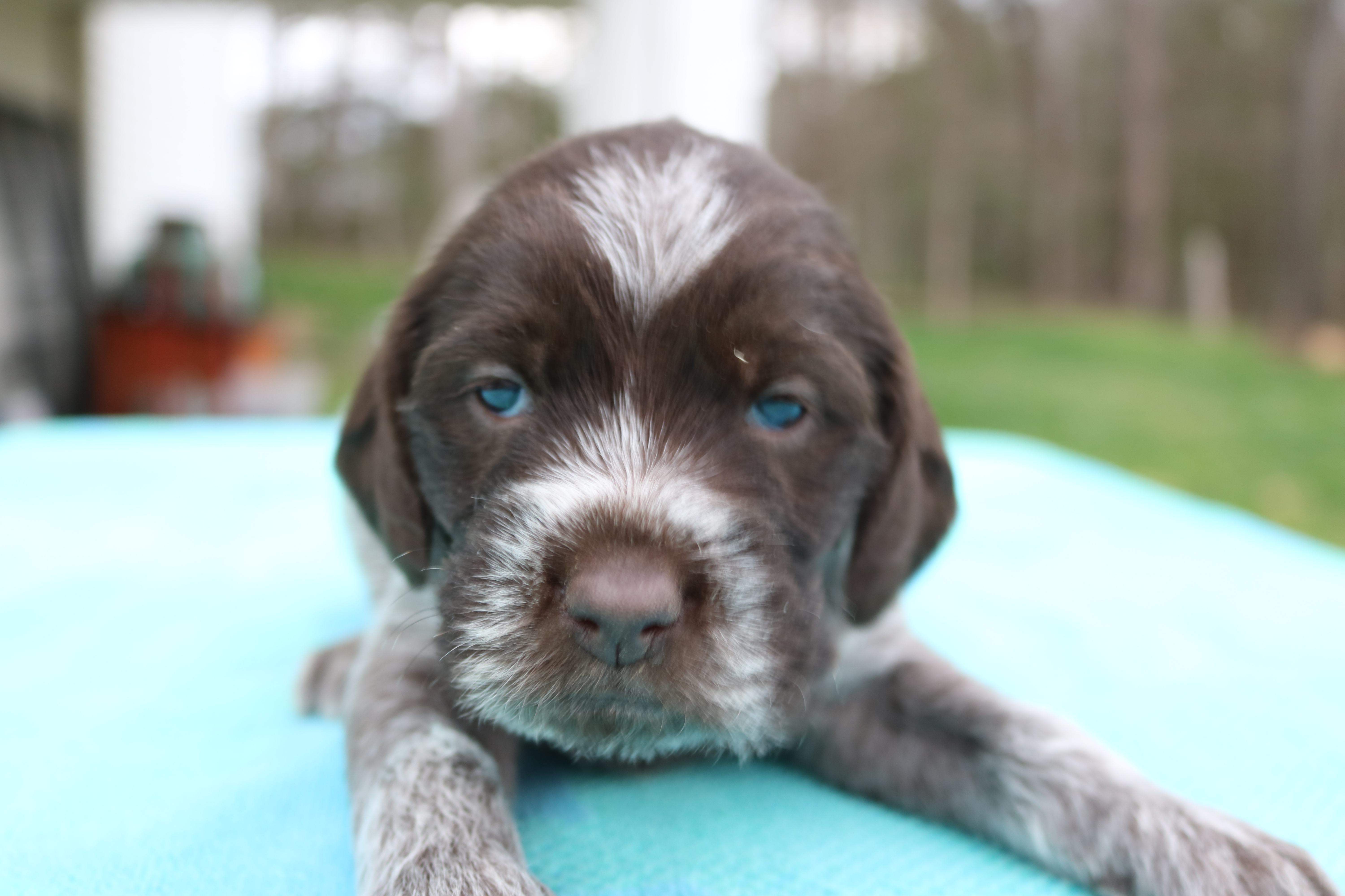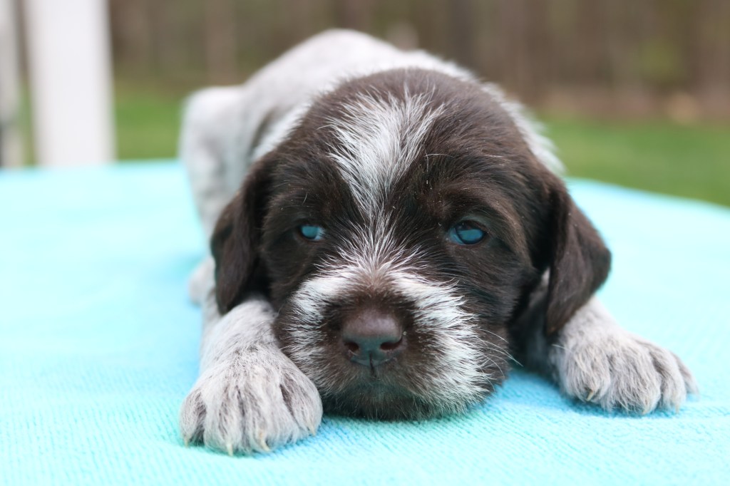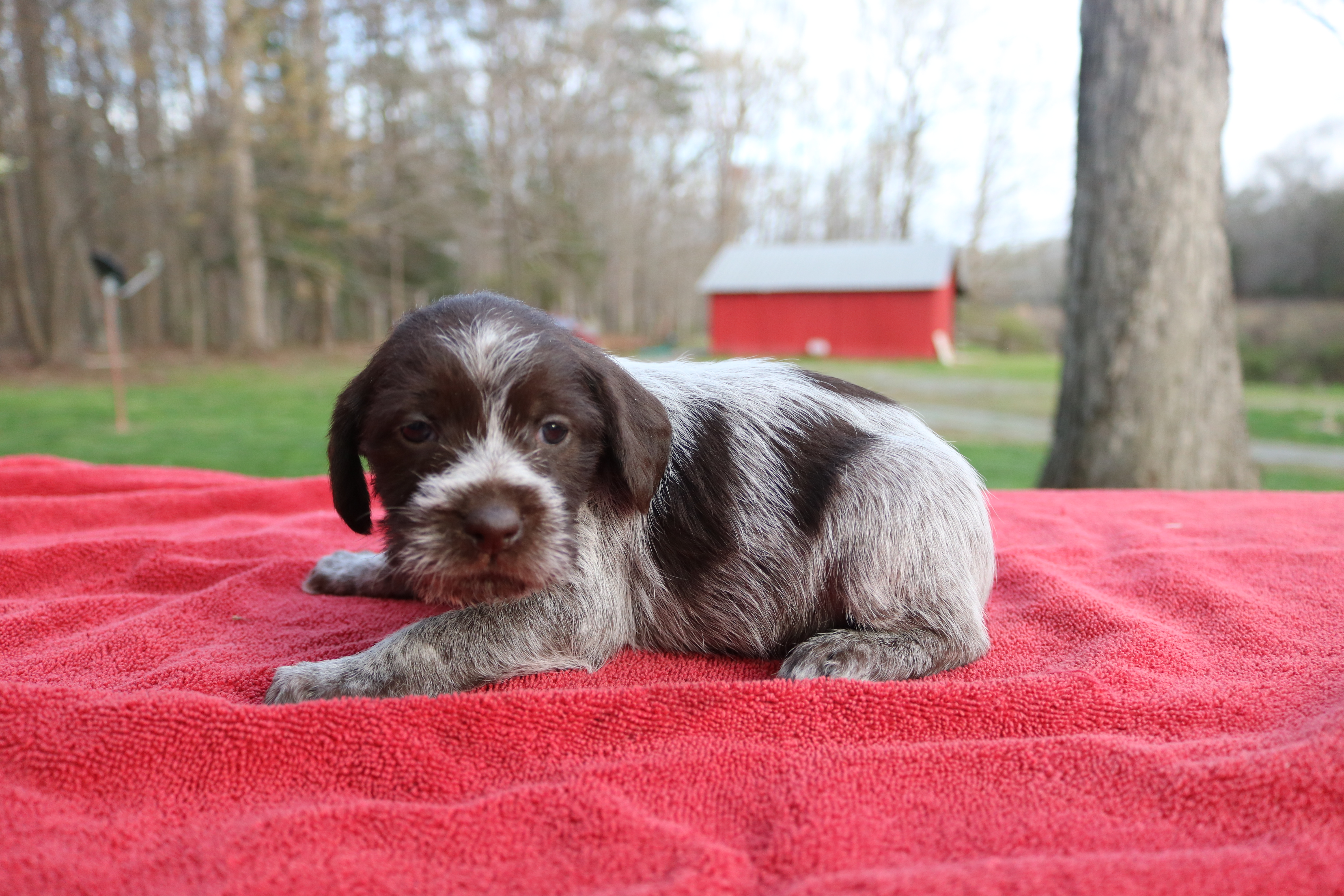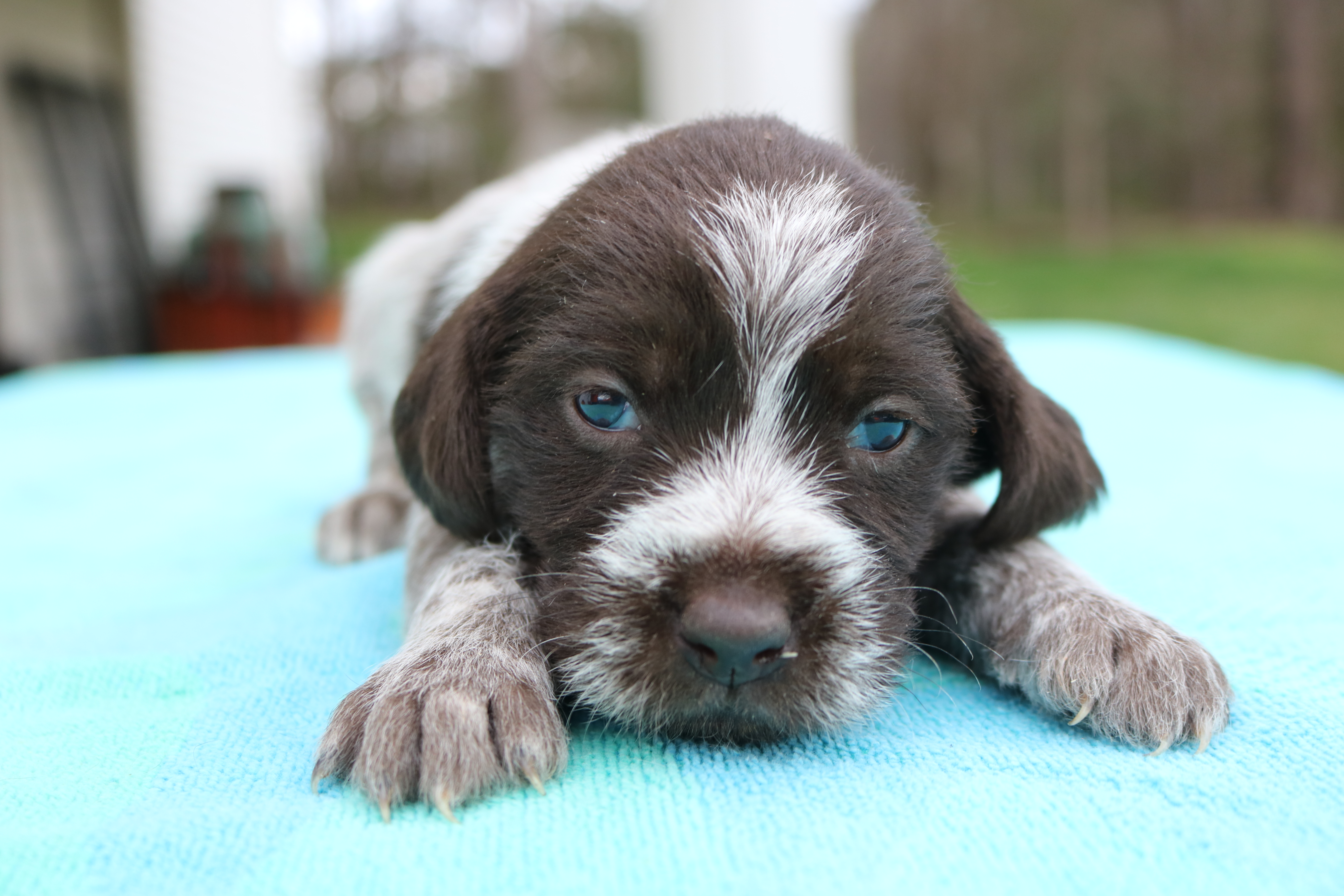 The “breeder pick” process is pretty common in Wirehaired Pointing Griffons, where we are getting interest from all over the country well in advance. We basically interview our families and evaluate our puppies to see who will be the best fit together. There’s no time for folks to come over and pick out the puppies themselves, so we handle it for them.