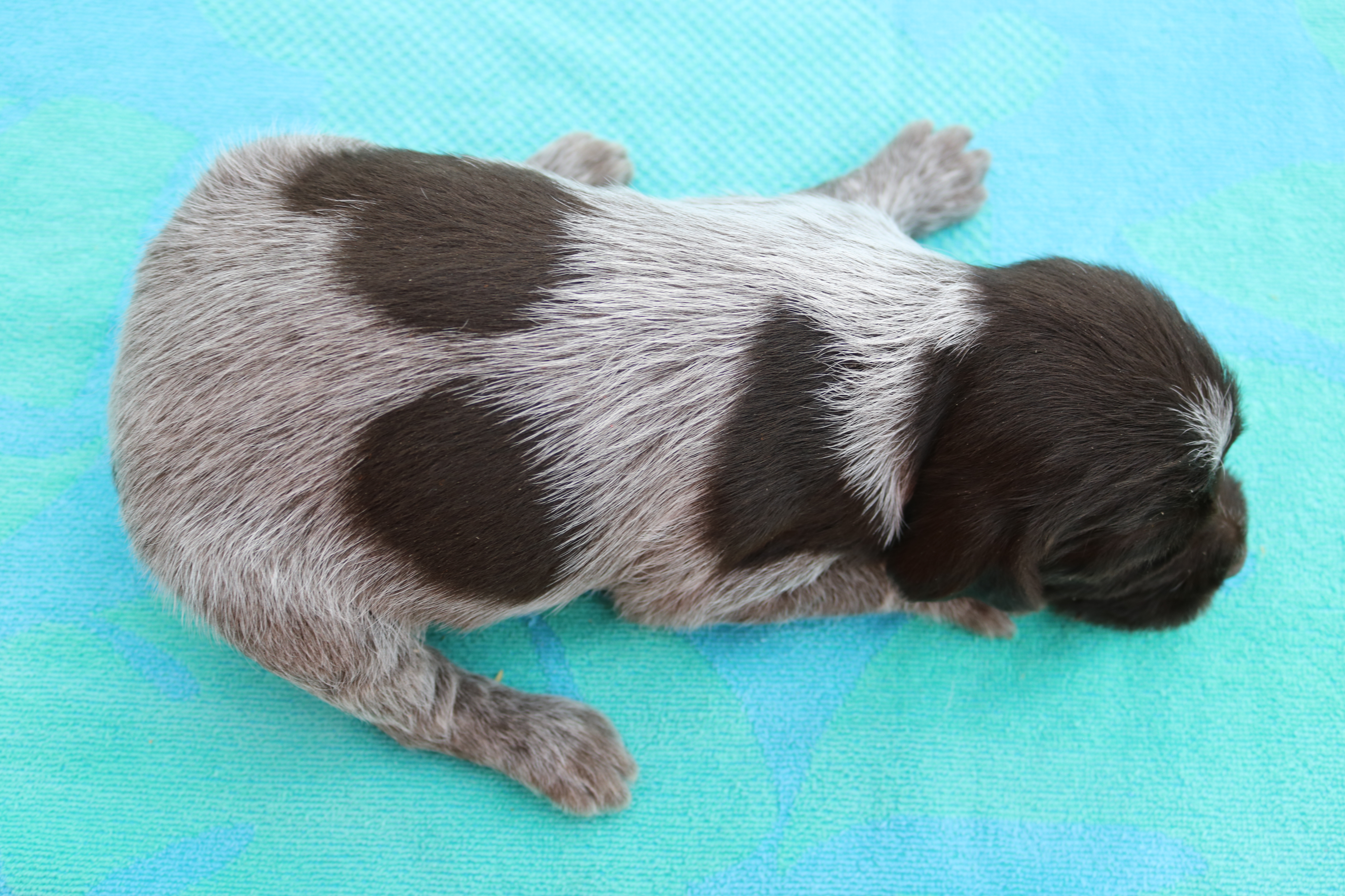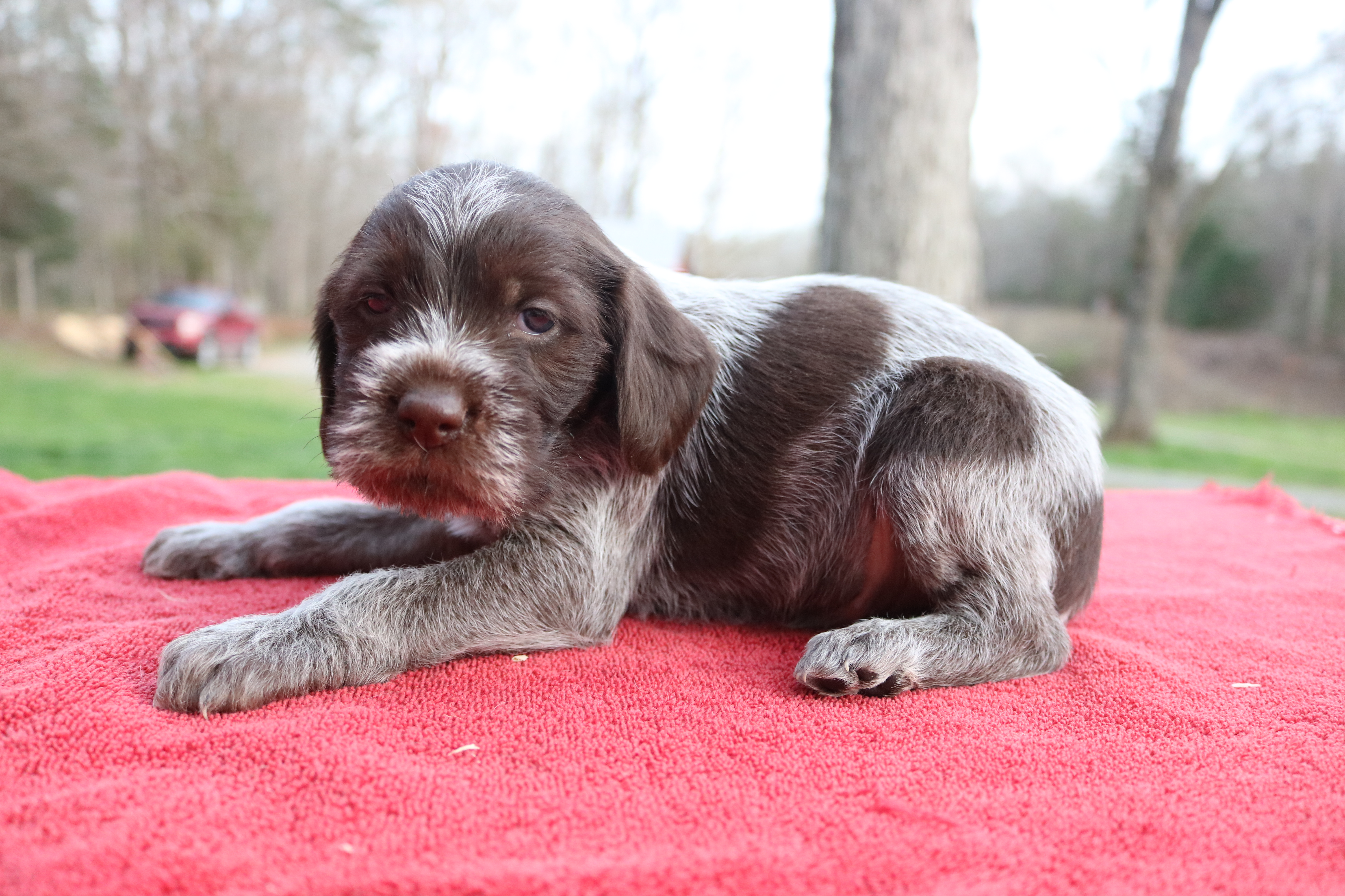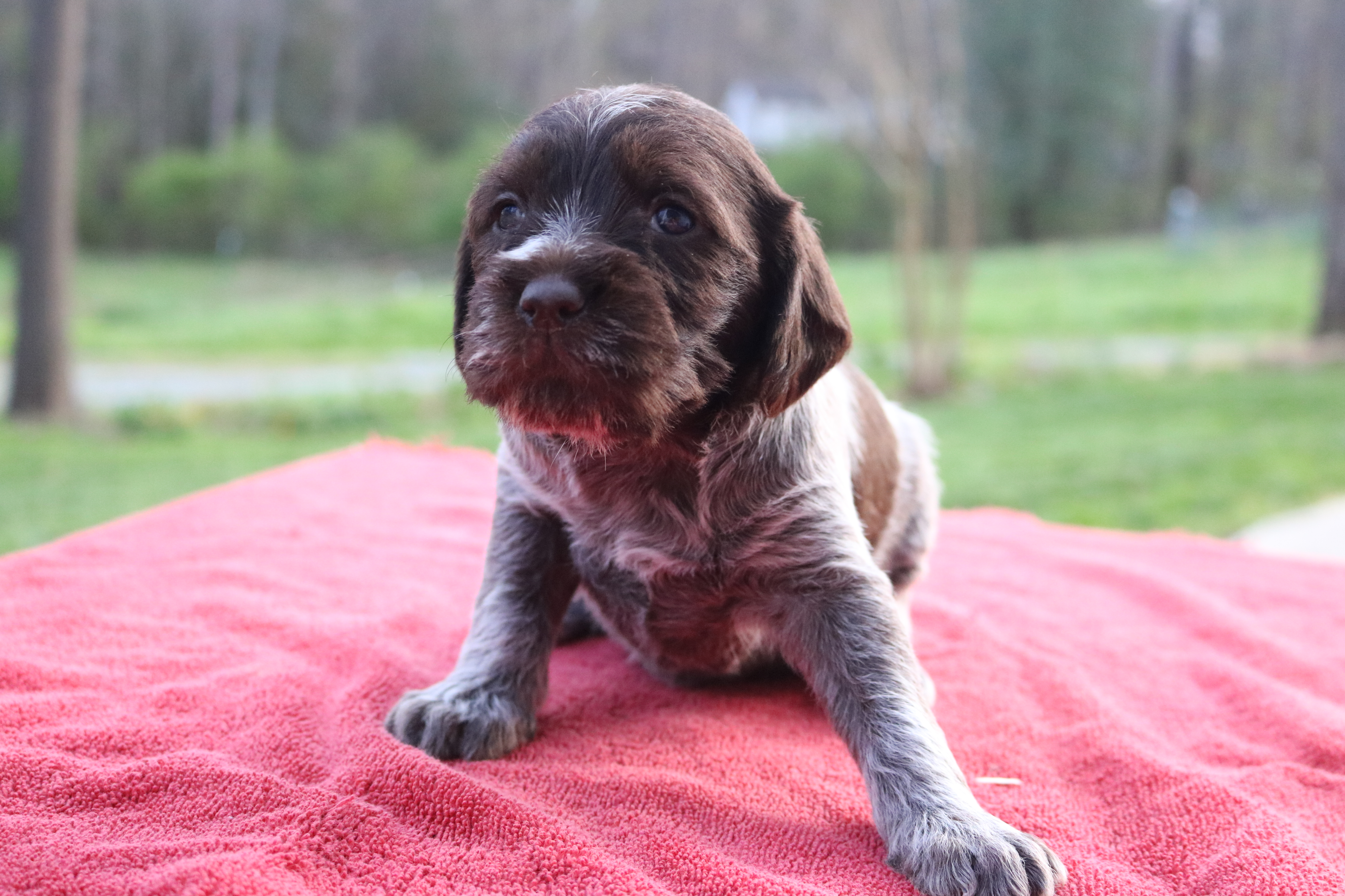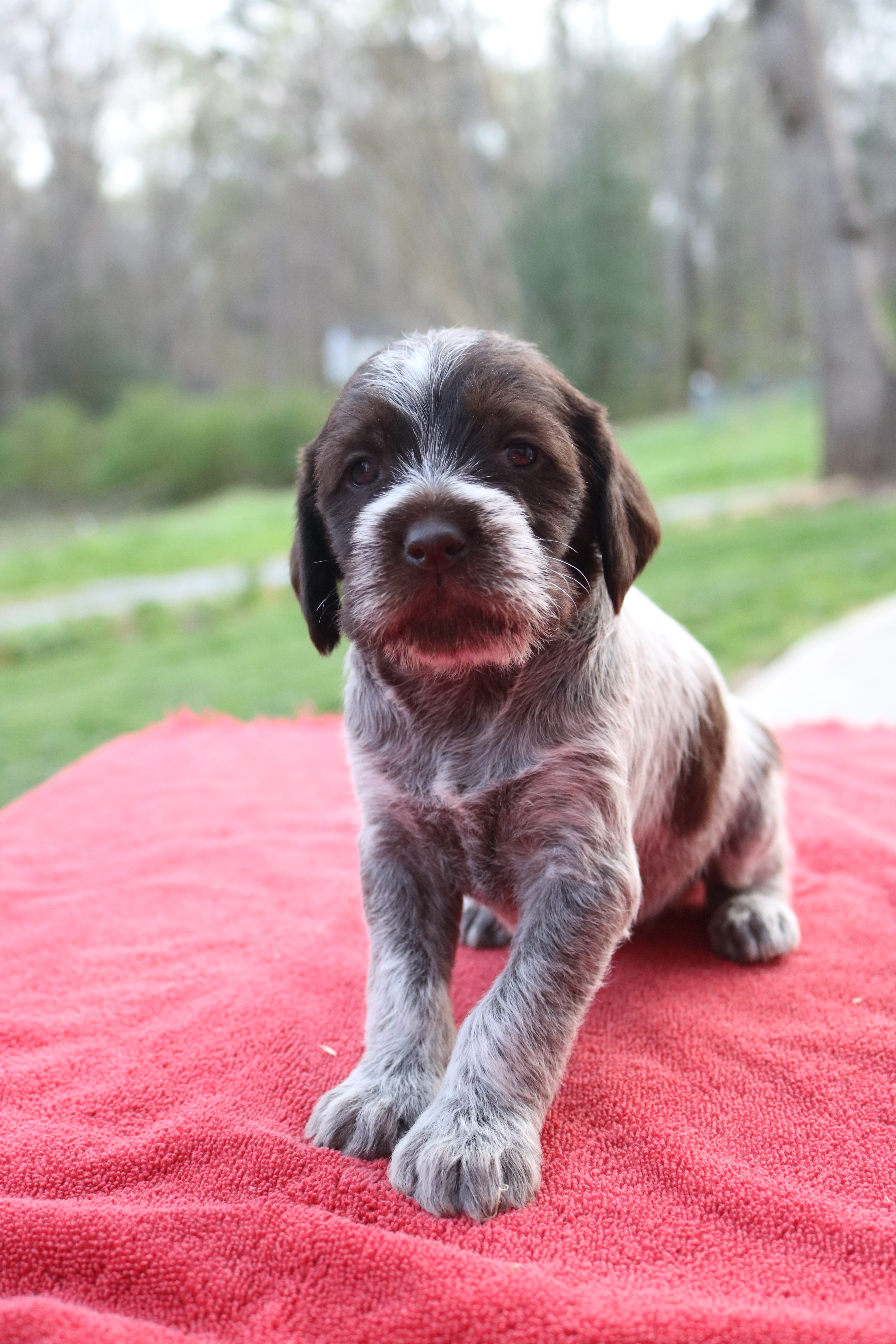The “breeder pick” process is pretty common in Wirehaired Pointing Griffons, where we are getting interest from all over the country well in advance. We basically interview our families and evaluate our puppies to see who will be the best fit together. There’s no time for folks to come over and pick out the puppies themselves, so we handle it for them.