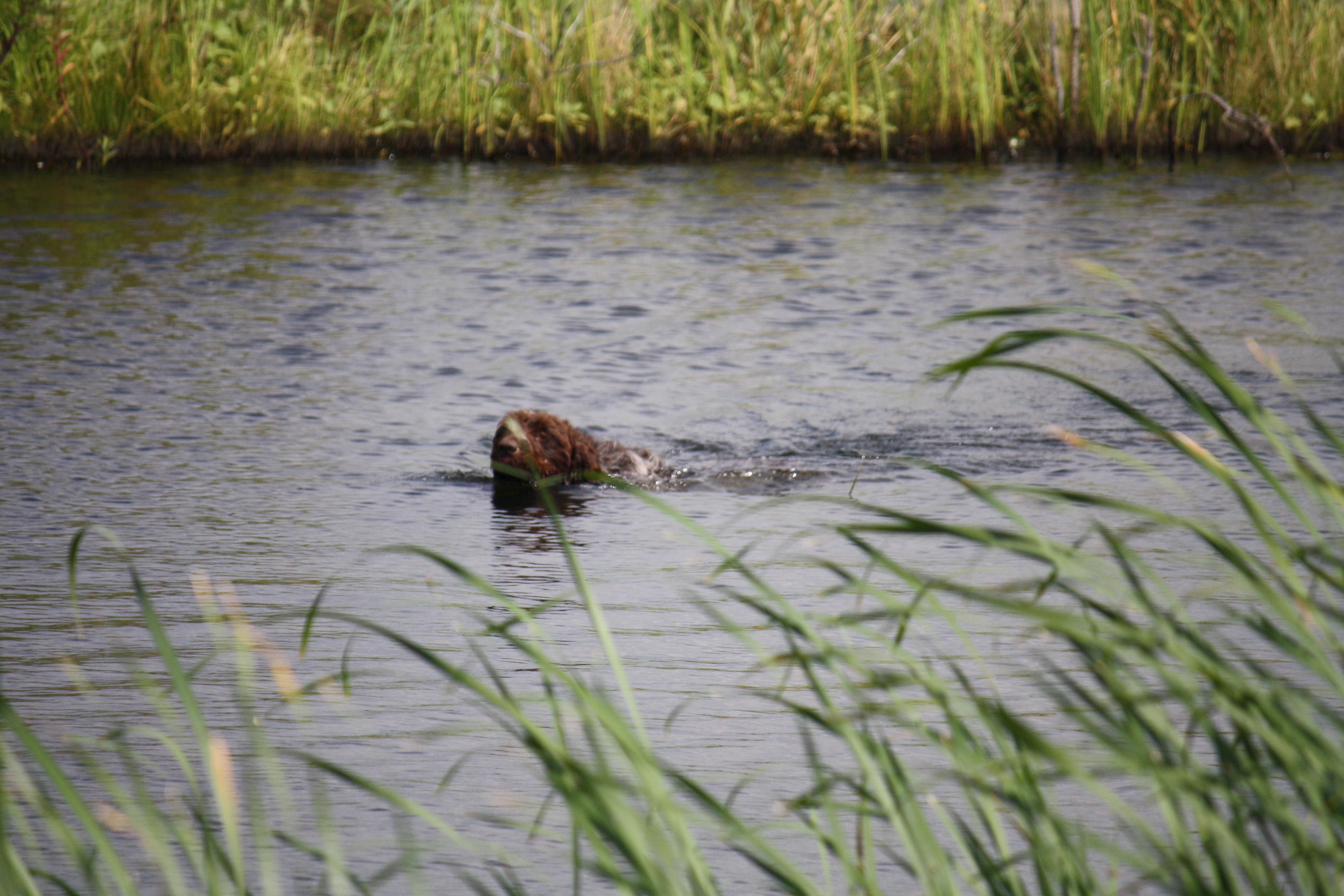 Ruth’s duck search was pretty crummy, but enough to get the job done. She didn’t get out too far and there was too much running on the bank. But she didn’t run and hide under the truck or sit under Charles’s feet. She did some stuff in the pond for 10 minutes. The score: Search for Duck – 2.