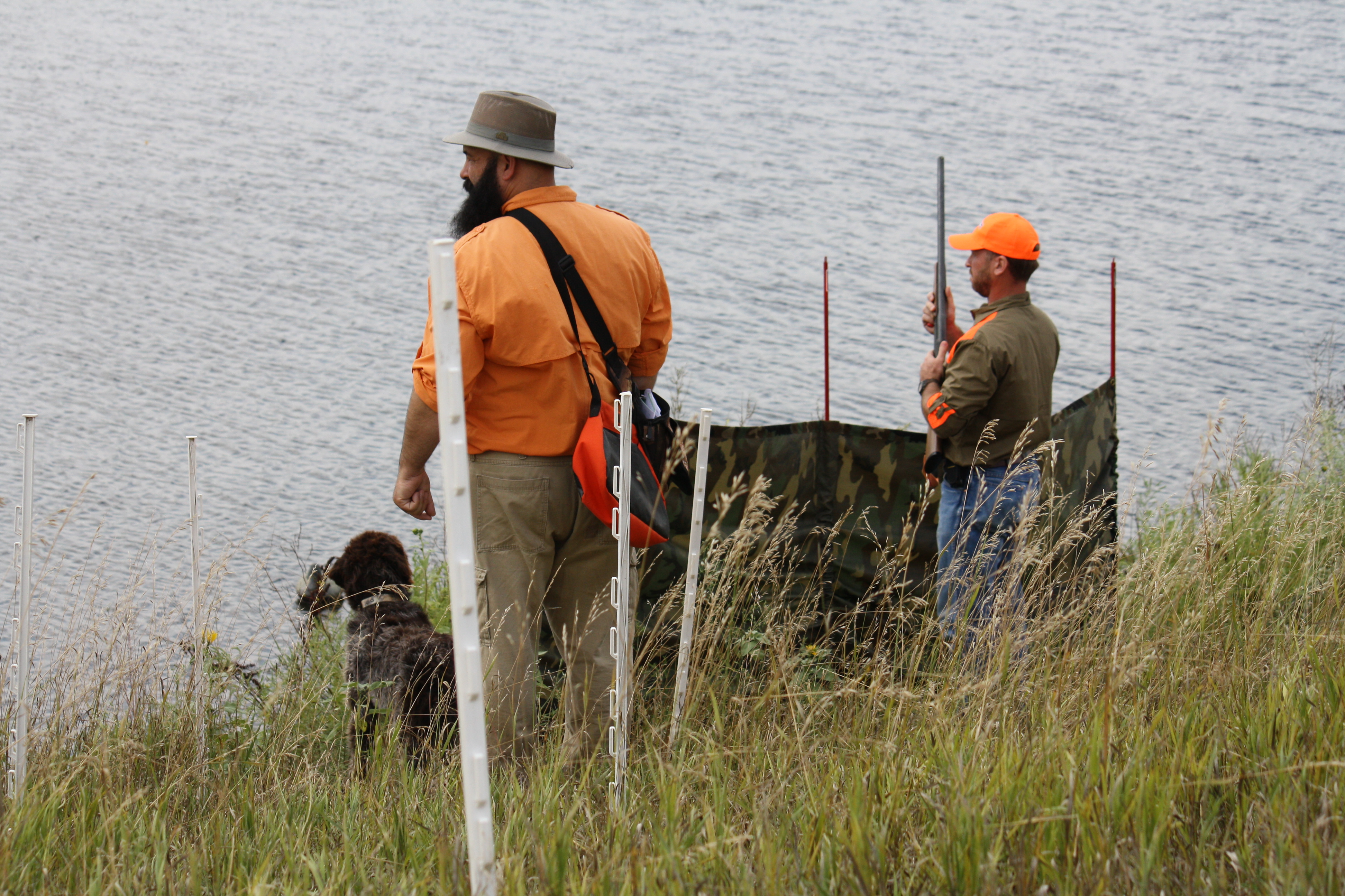 On Saturday, August 17th was our first North American Versatile Hunting Dog Association (NAVHDA) Utility Test in Sioux Falls, South Dakota with the Midwest Tri-State NAVHDA Chapter. In the running were Sweetgrass Plainsman Samson “Sam” age 5 and Bourg-Royals CB Bluestem “BB” age 2 with my husband Charles handling both dogs. The Midwest Tri-State NAVHDA Chapter is one of the best in the country and folks come from all over to participate in their events.
