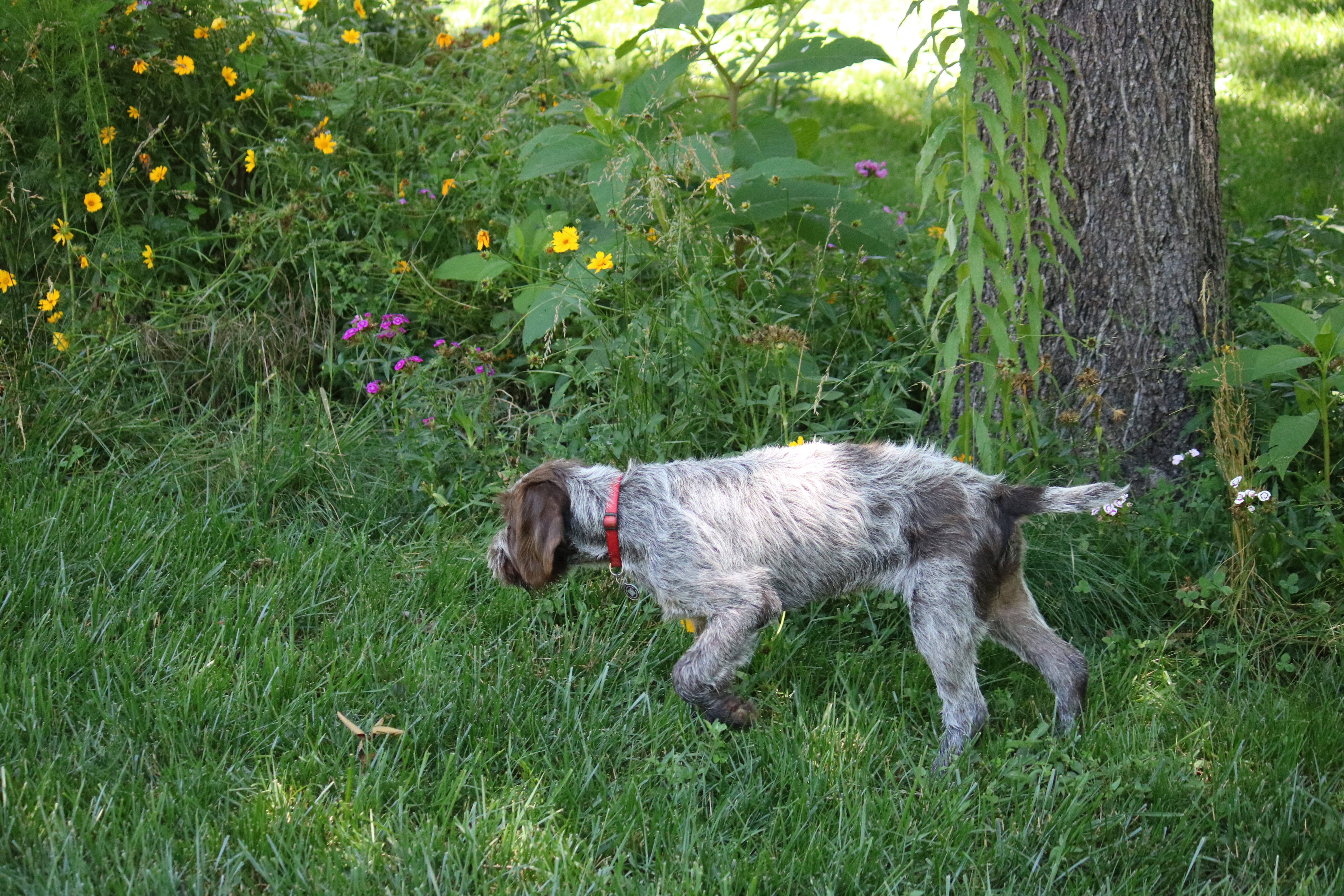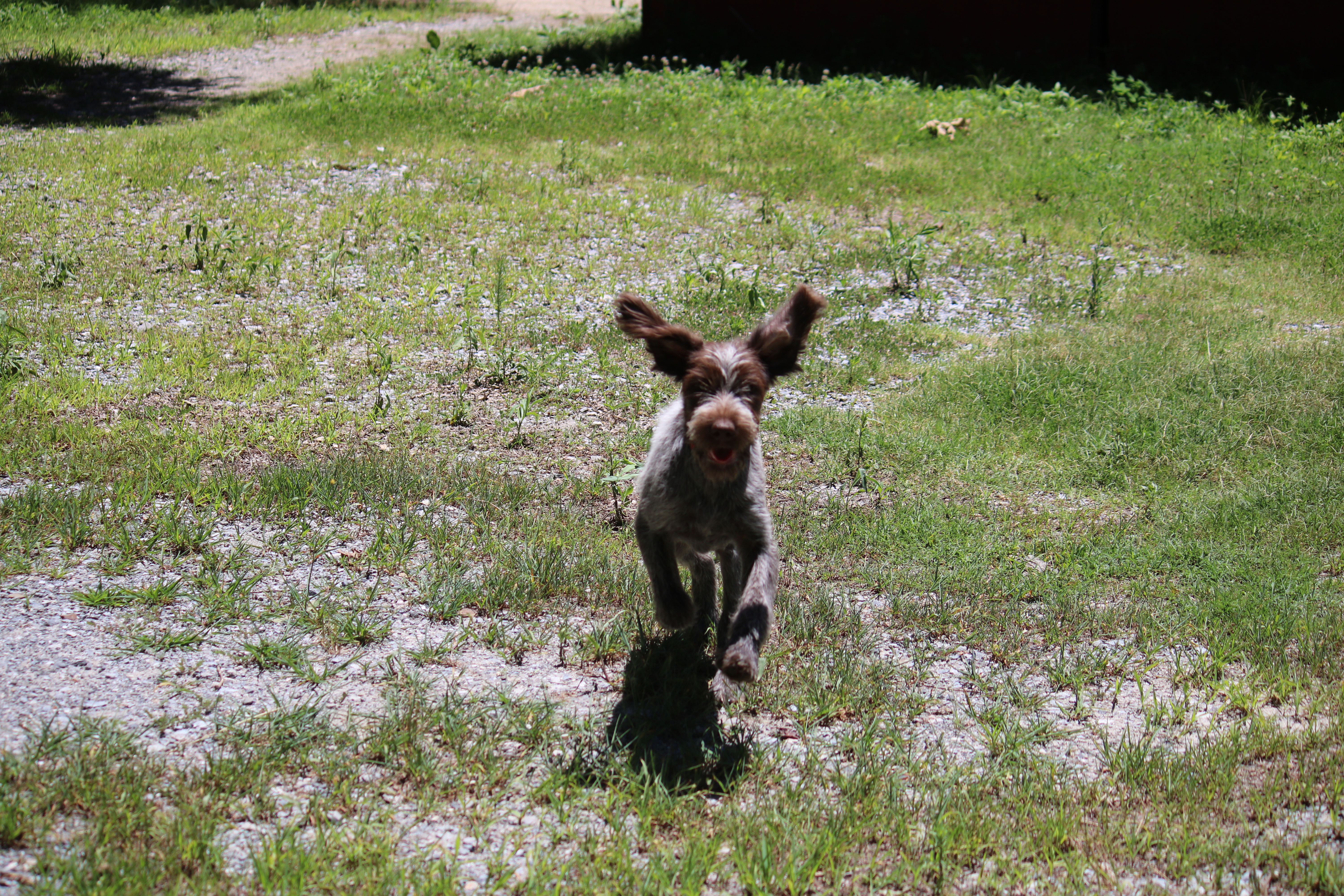 They’ve all done really well with cap gun fire exposure, I call them to meals by banging on a metal bucket with a rod, so loud noises have a positive meaning for them. As long as their new owners focus on working with bird contact excitement while exposing them to things such as starter pistols and eventually shotgun fire, they won’t have problems with gunfire conditioning. I still like Richard Wolters Gun Dog as an easy place to start with puppies in book form. Of course, once your puppy is fully vaccinated you should take him or her to their first NAVHDA training day for advice too! Griffons don’t do very well with being sent away for training since they are so attached to their people, so if you decide to work with a professional, have them work with both you and the dog together.