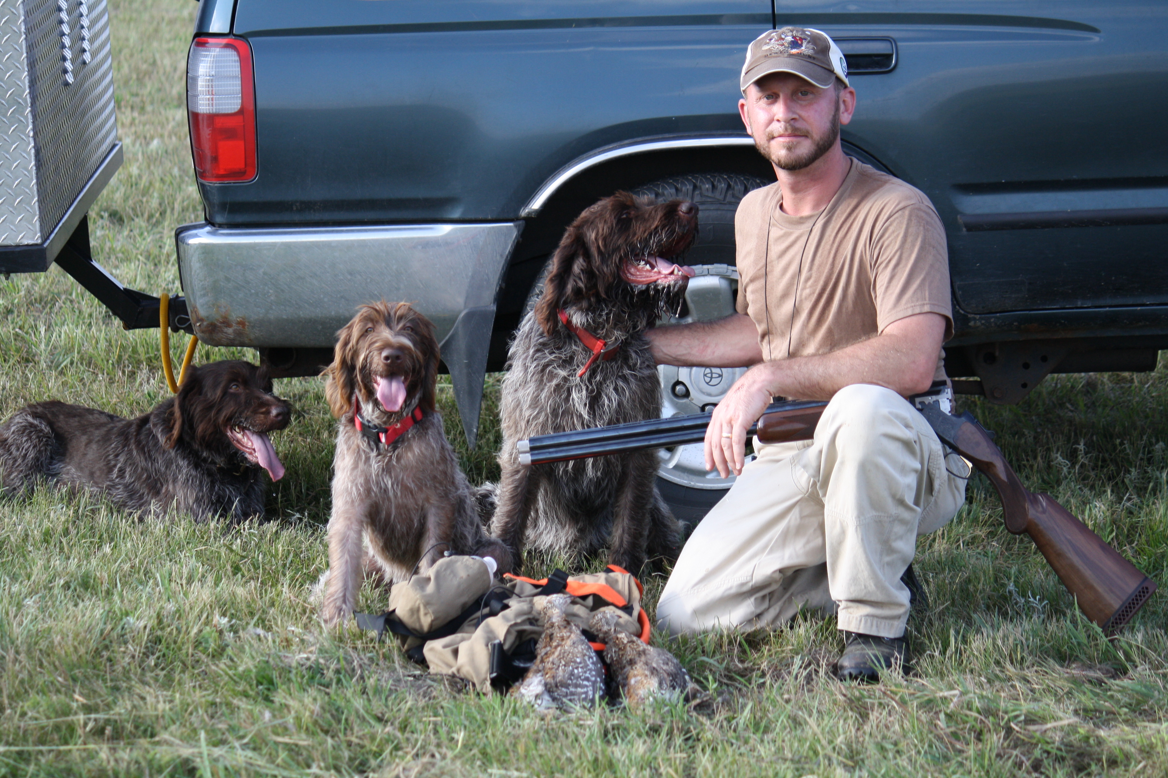 Our favorite windmill was occupied by other hunters, but we moved on to another choice spot, which later seemed to be the better choice, considering that it had shade and our first choice did not. We keep the dogs boxed up during the shooting of the doves and only bring them out for retrieving assistance.