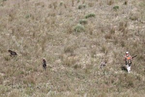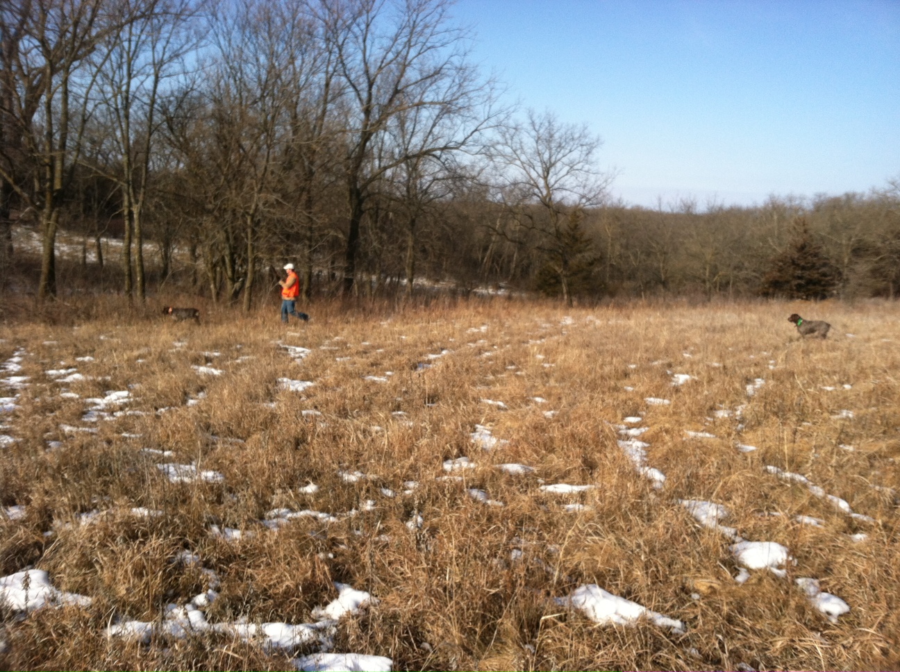 I whistled for dogs for a minute or two with no response, as Charles had marched west looking for some other stragglers of the flock. Sure enough, I had peppered the bird and we were just lucky enough that Ryan came up on it while it was still flapping. He bagged it and we continued on, unable to see Charles and the dogs working the singletons to the west. When we all met back up fifteen or so minutes later, he sure enough had his bird.