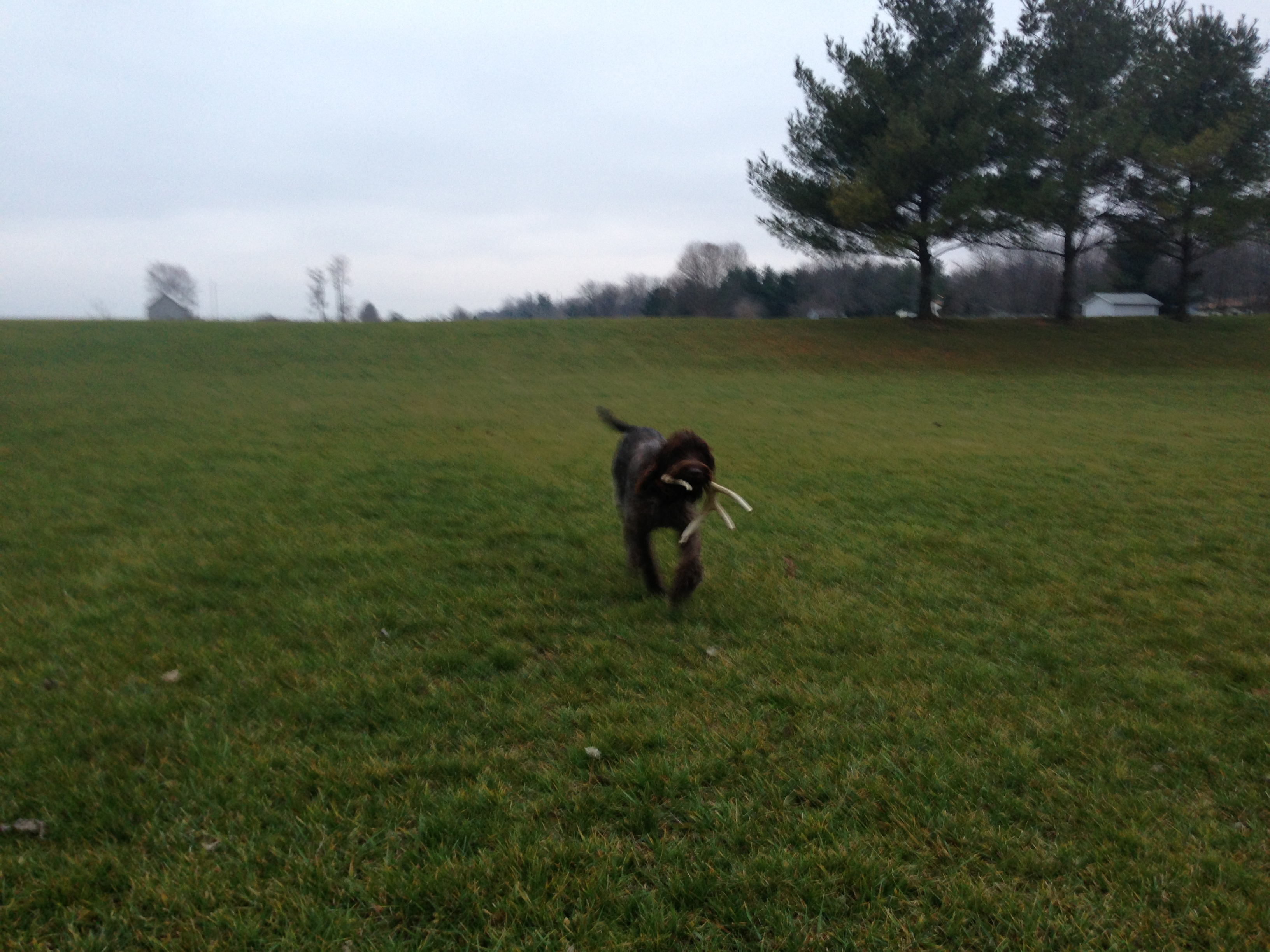 Thus began a big loop, starting straight towards the east, then circling north. As we completed the loop, heading south right in front of this old hunter, a lone sharpie jumped up and we both shot our two shells, with Charles making the hit. We were busy admiring Sam’s retrieve and failed to reload…only to have six to eight more birds flush up around us, with their cackling “caw-caw-caw-caw-caw” heckling us. Charles was able to load some shells in time to get one more, but I stood there dumbfounded. I’m sure the old man was laughing to himself, but he never shared that with us. Sam had his mouth full of bird already, so Sue was finally able to get in on a retrieve. Once the two birds were in the bag, he asked if we could take our dogs through an area that he thought he had put a bird down earlier. There was not a bird to be found, but I was out of water and headed back to the truck. Charles and the old timer continued to walk the field for another hour or so before calling it a day around 6 PM.