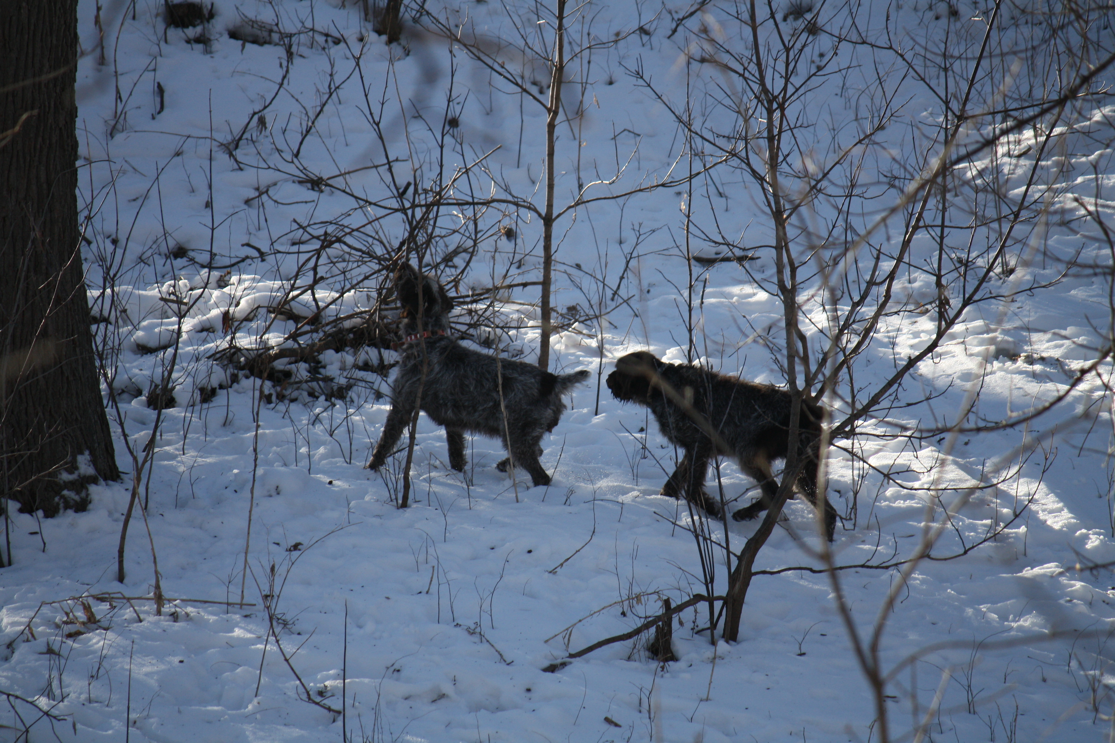 Sam retrieving Ryan's last bird, with Sue backing him up