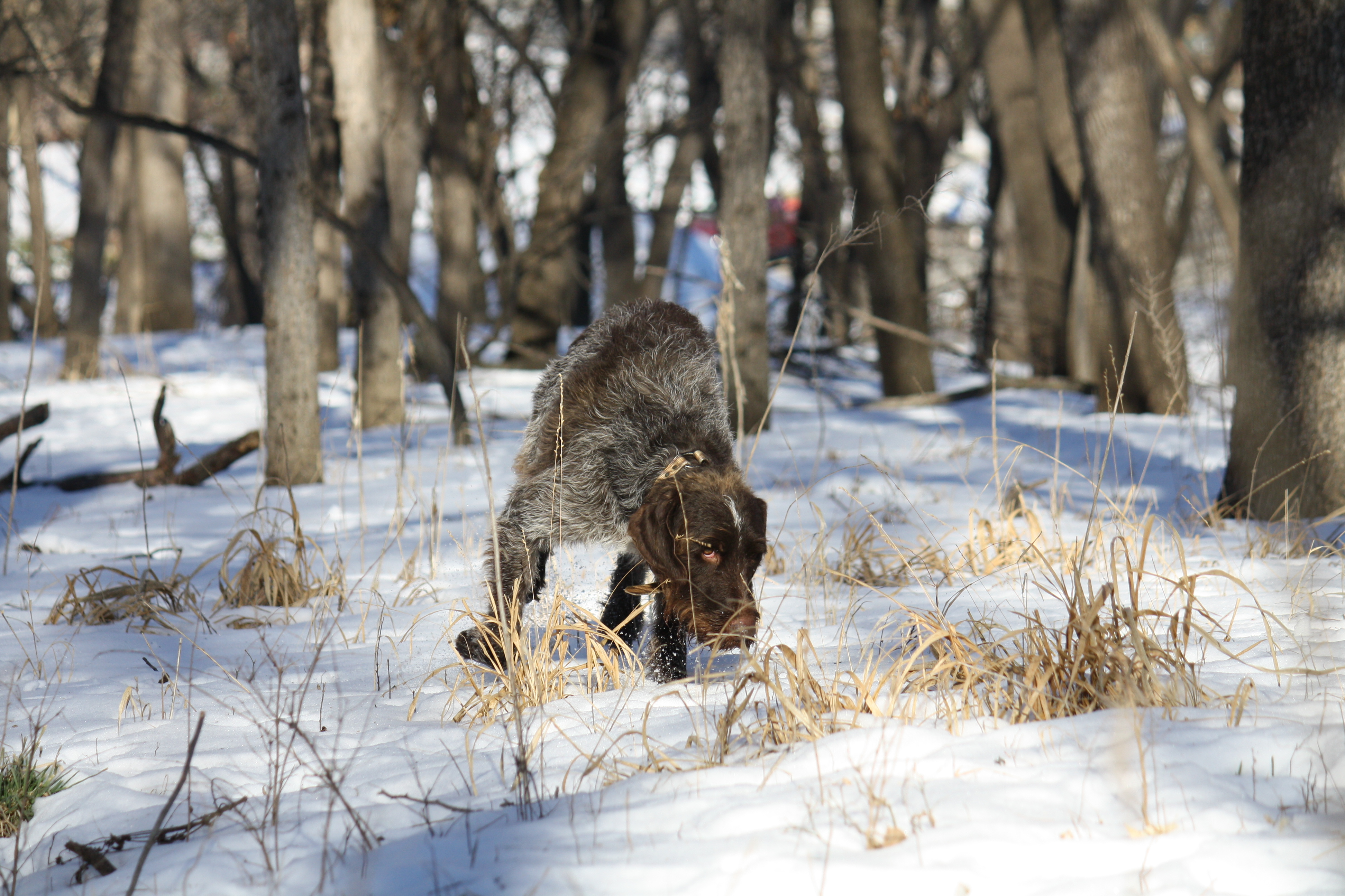 We again had pushed the flock westward and again we marched them down. It was only 200 yards away when we found them again and Charles took his bird, with Sam on retrieve. Our search continued westward: up, down and around the high chop of the dunes, seeing nothing additional, and we pushed through the yuccas to the truck for a midday break. After our long, well-deserved lunch, we pushed for an hour and a half through the sand bluestem, poison ivy and wild rose bushes with no luck. By 3 PM, we voted for a switch to dove hunting.
