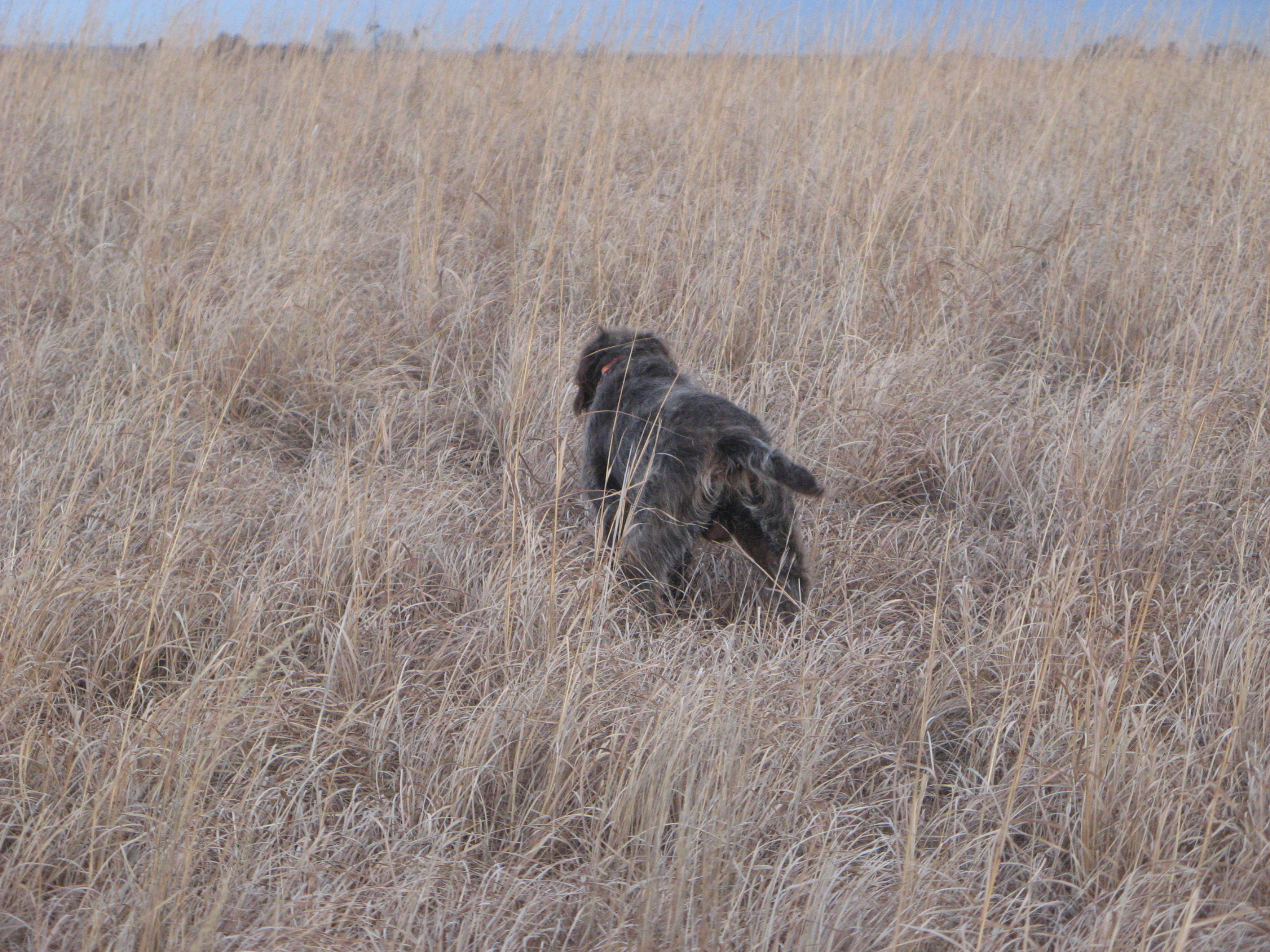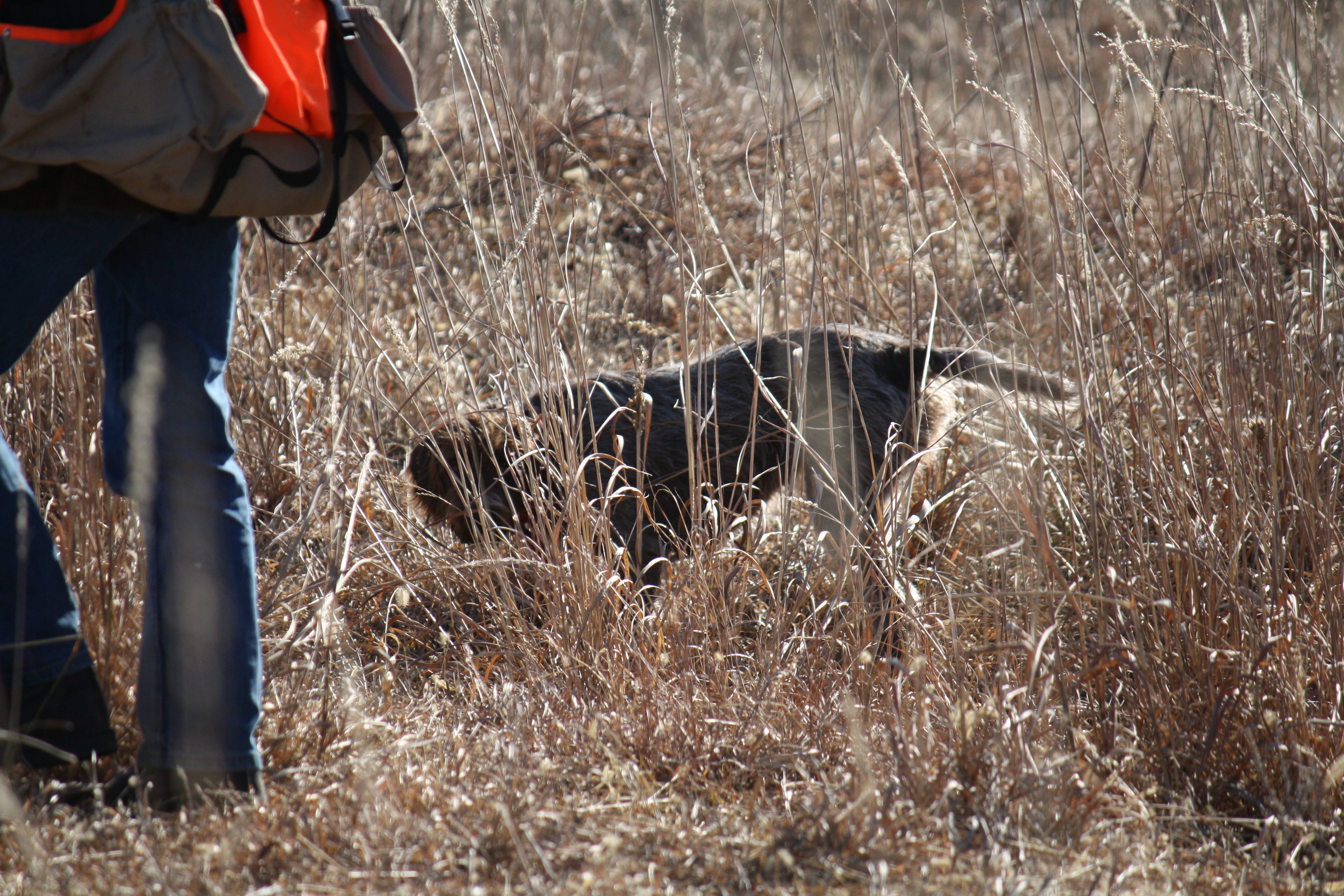 Bella’s first bird hunt was a success! Even more impressive considering the tough conditions. The wind was blowing 25 mph, gusting to 35 mph! Nothing was flushing. Everything was running. She also found plenty of dead/un-retrieved birds.
