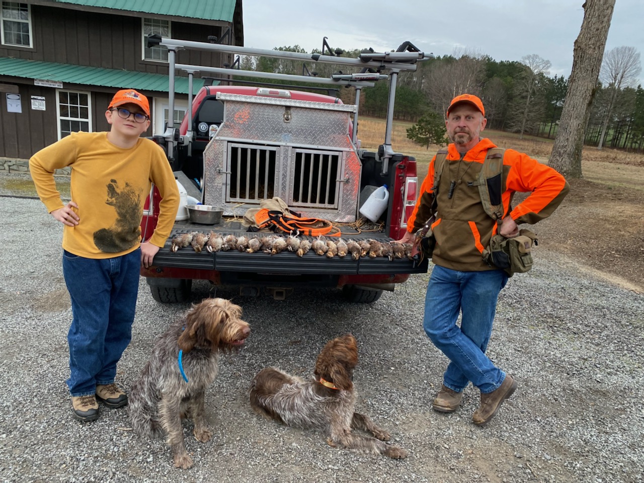 The Saturday after Thanksgiving, Charles headed to central South Carolina to look for some quail. One thing that he has learned about hunting down here is that you really have to read your regulations. Some fields are only open for hunting for certain days per year. The place that he went was one of those quail management units, which is not how it is out west, so it was something new for him to check out. There was one other hunter there without dogs, so they just worked away from each other. He had our pointer Dolly out first with our older male, Obi, and she is just a bird finding machine. I really did not want a pointer, but it is nice to have a hot-footer out in front sometimes really zooming around looking for birds. They pushed up a covey and another single before they connected here. On this one Dolly stayed on point, Obi honored, Charles got the shot, then Obi retrieved.