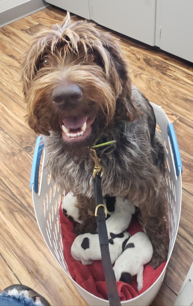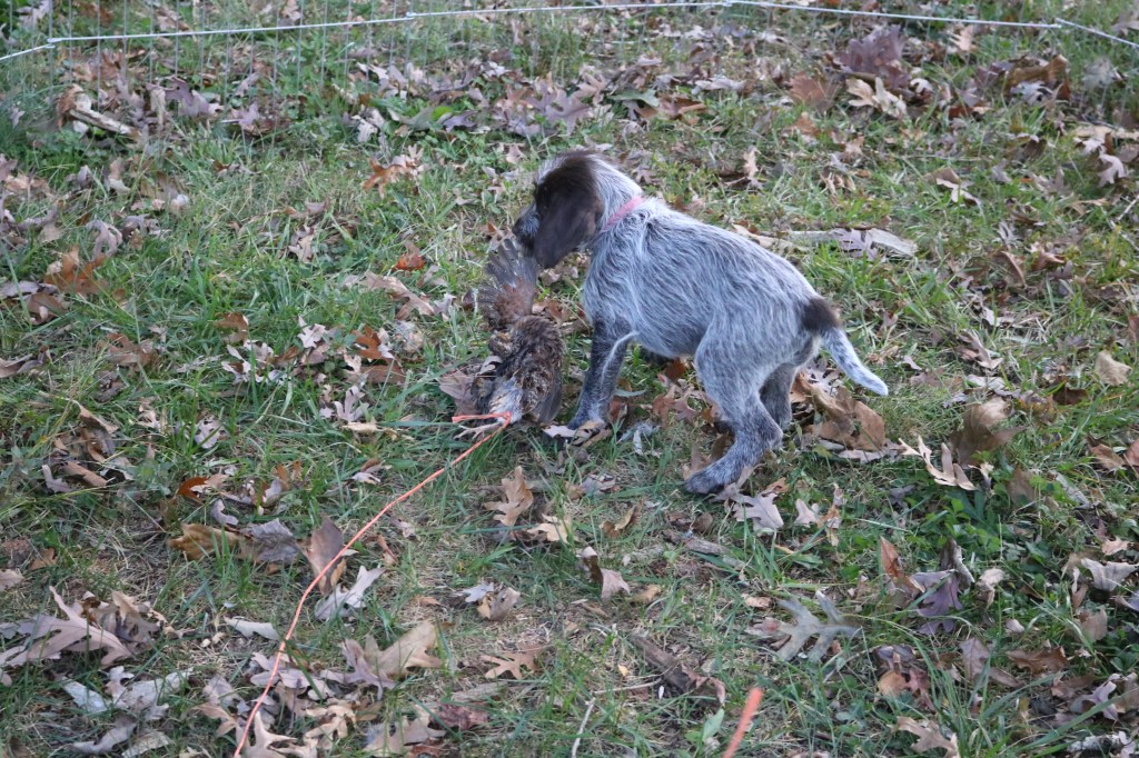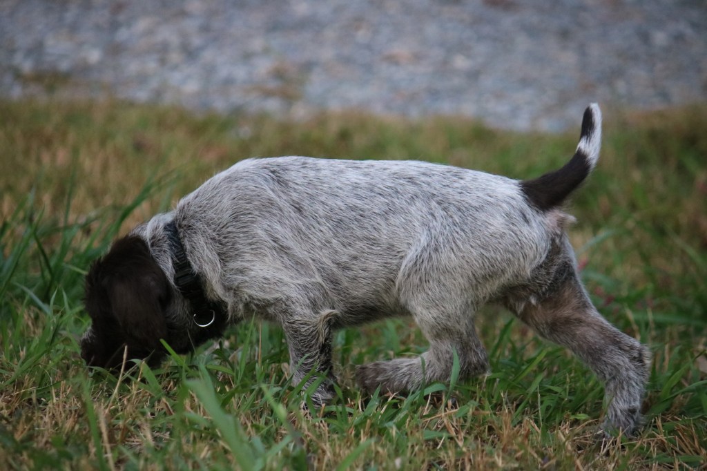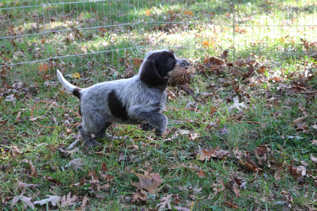 While I was busy with puppies in the fall, I missed an accomplishment announcement for the first Ruth and Obi pup to NAVHDA test Natural Ability. Congratulations to Clint and Bluestem Ramble on Rosalind “Rosie” on their NAVHDA Natural Ability Prize II, 101 points at seven months-old! They tested on September 10, 2022 with the Keystone Chapter in Central Pennsylvania. That is an amazing accomplishment for a first-time handler and young pup, we couldn’t be more proud!