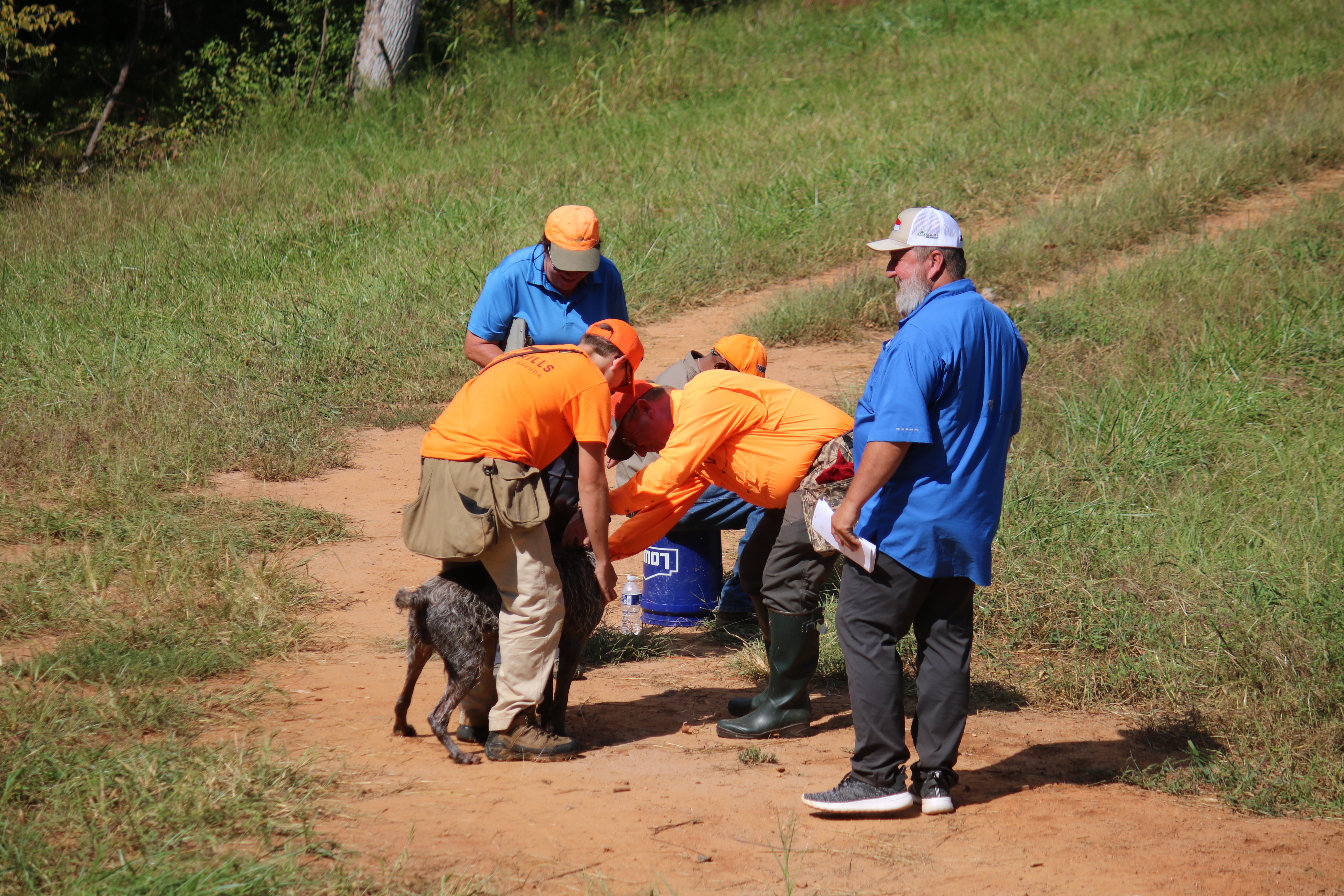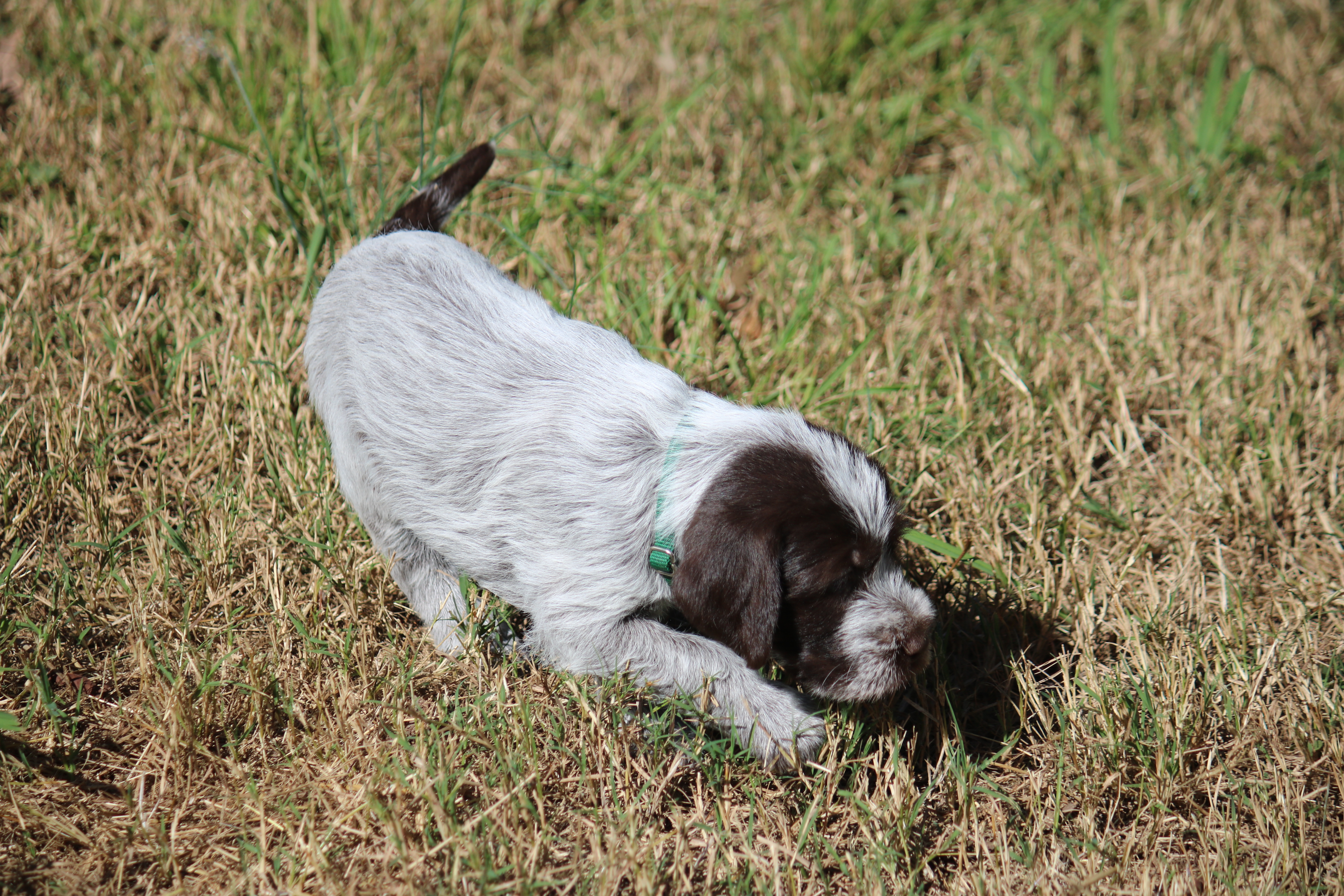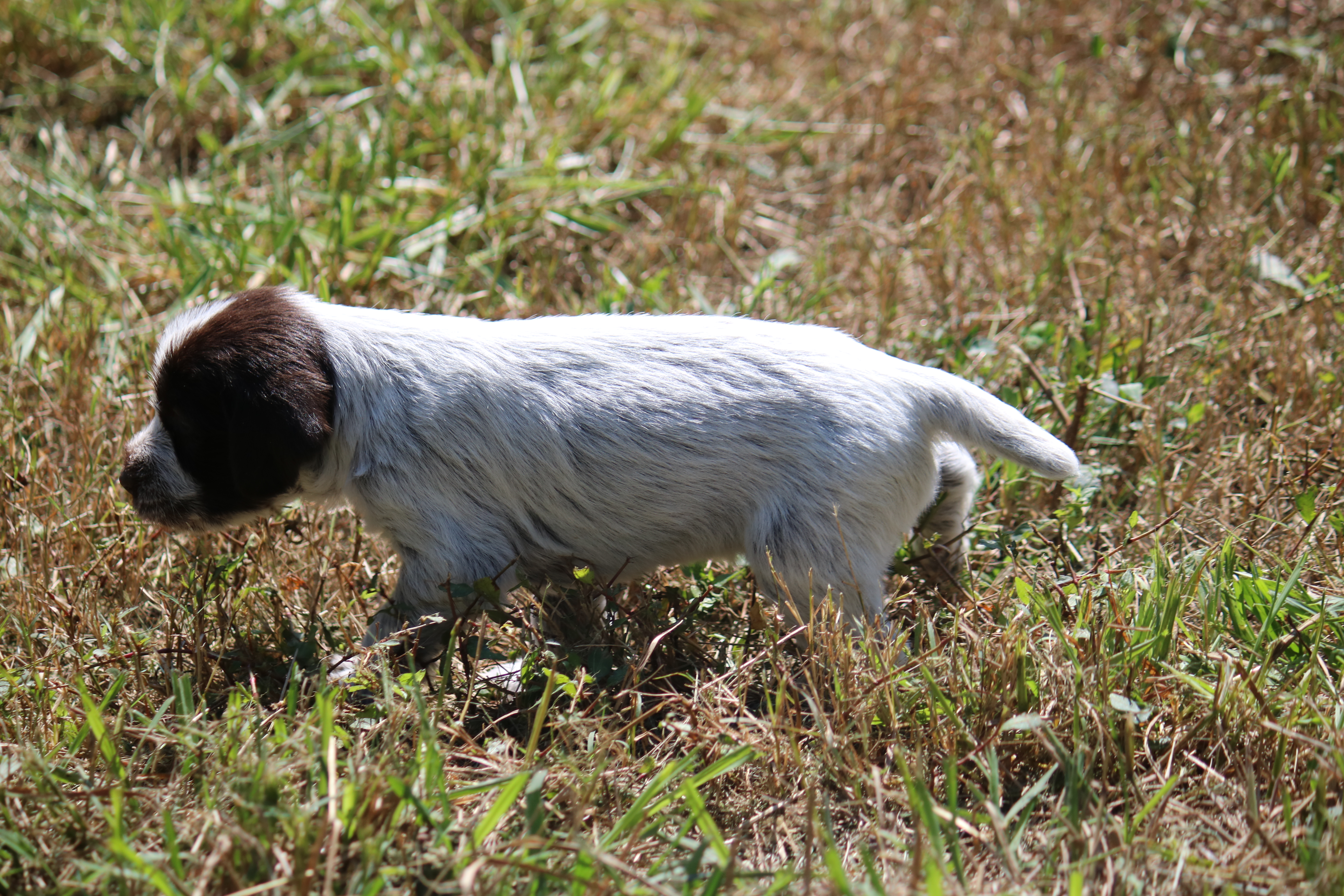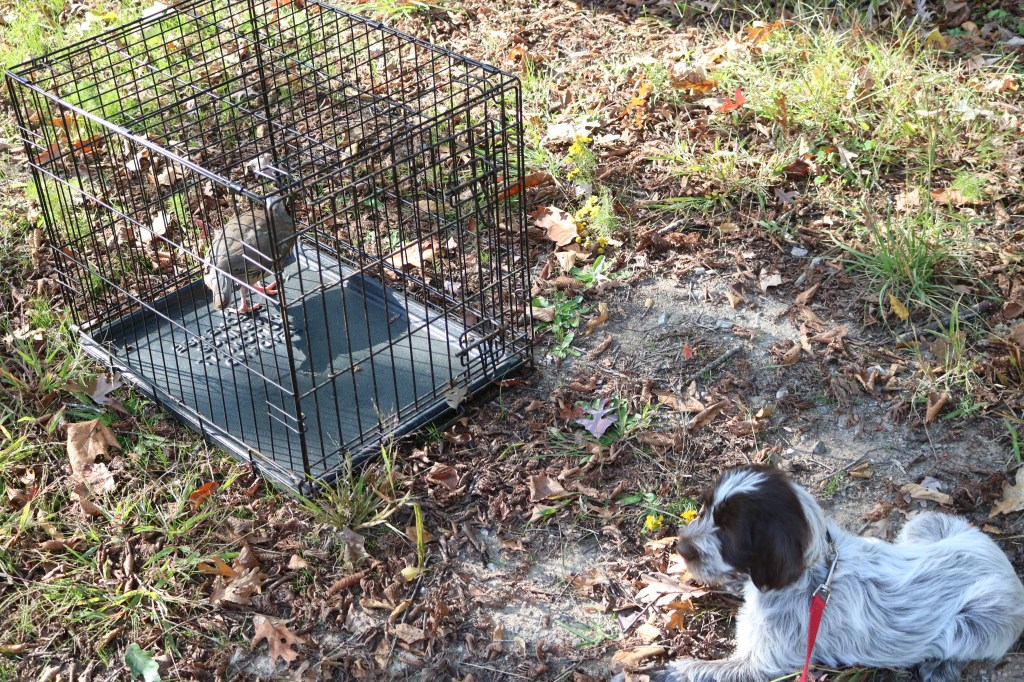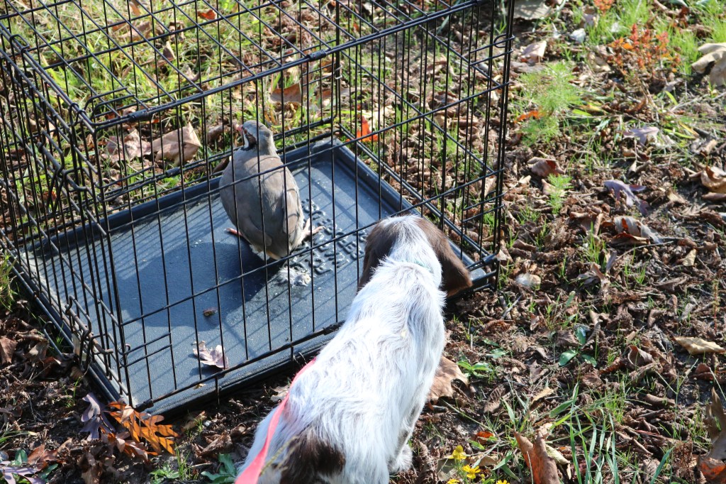 Charles has been working with training Obi for NAVHDA Invitational, Duke and Sally for UPT or AKC SH, and Ruth just to keep her active. Here’s just a couple of random training photos from the last couple of months where he is working with our Griffons and the English Pointers of the neighbors’.