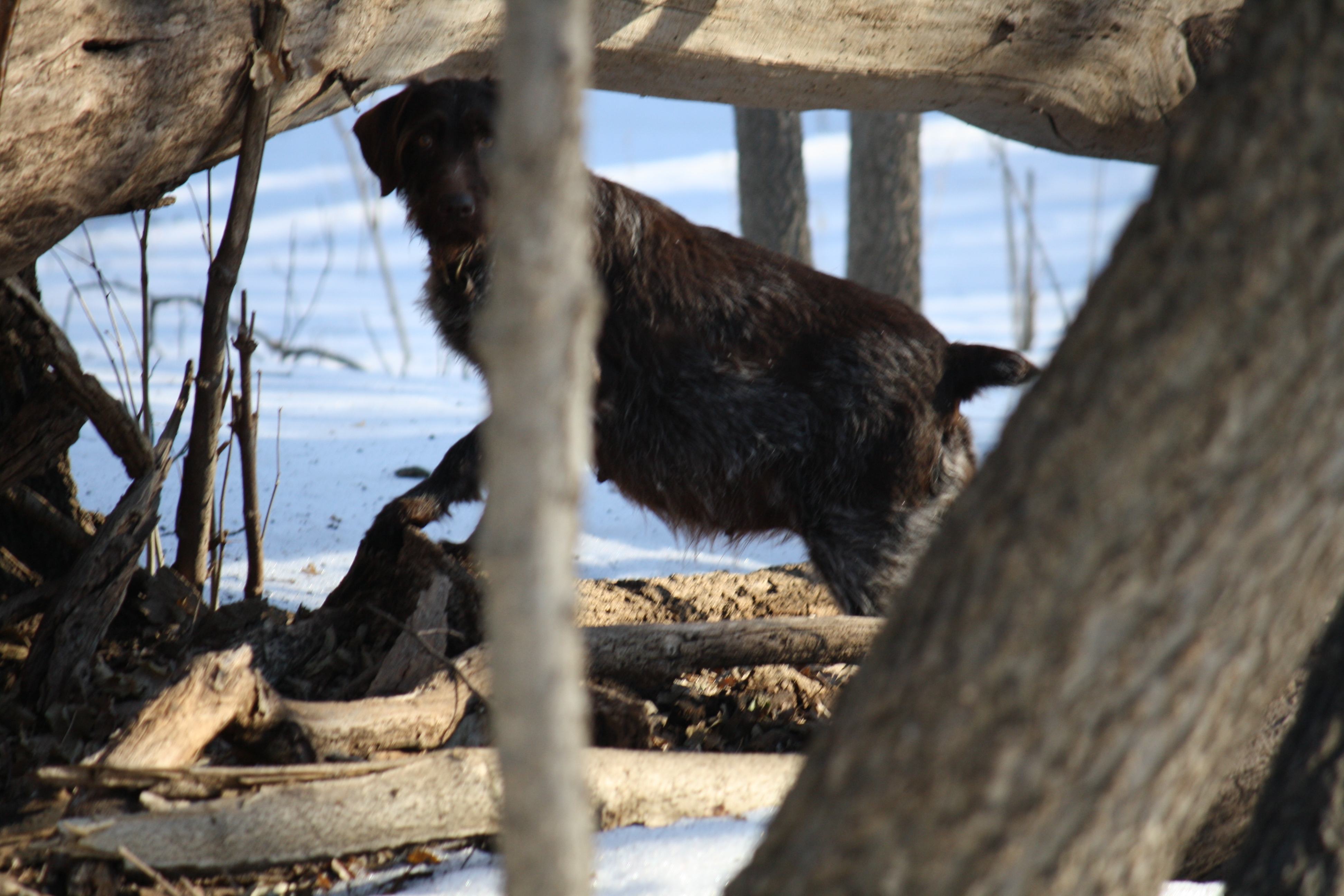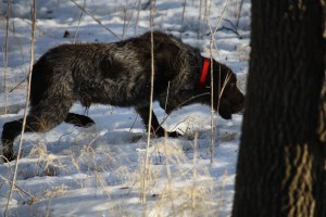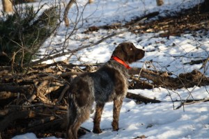 Speaking of the NAVHDA Chapters in Maine, Tyson out in Bangor sent me a pic of Moose doing some work at a recent training day. Moose is from our 2014 “H” litter from Sam and Mae and is 12 weeks old in the picture.